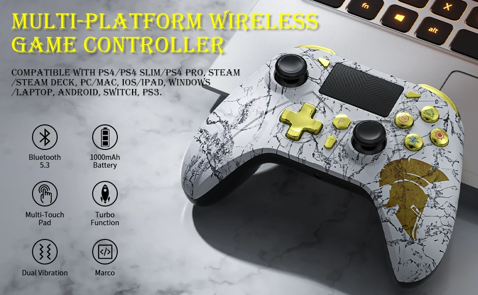 • Compatibilidade com Bluetooth:Conecta-se ao seu PS4, PC ou dispositivo móvel via Bluetooth para uma experiência de jogo perfeita.