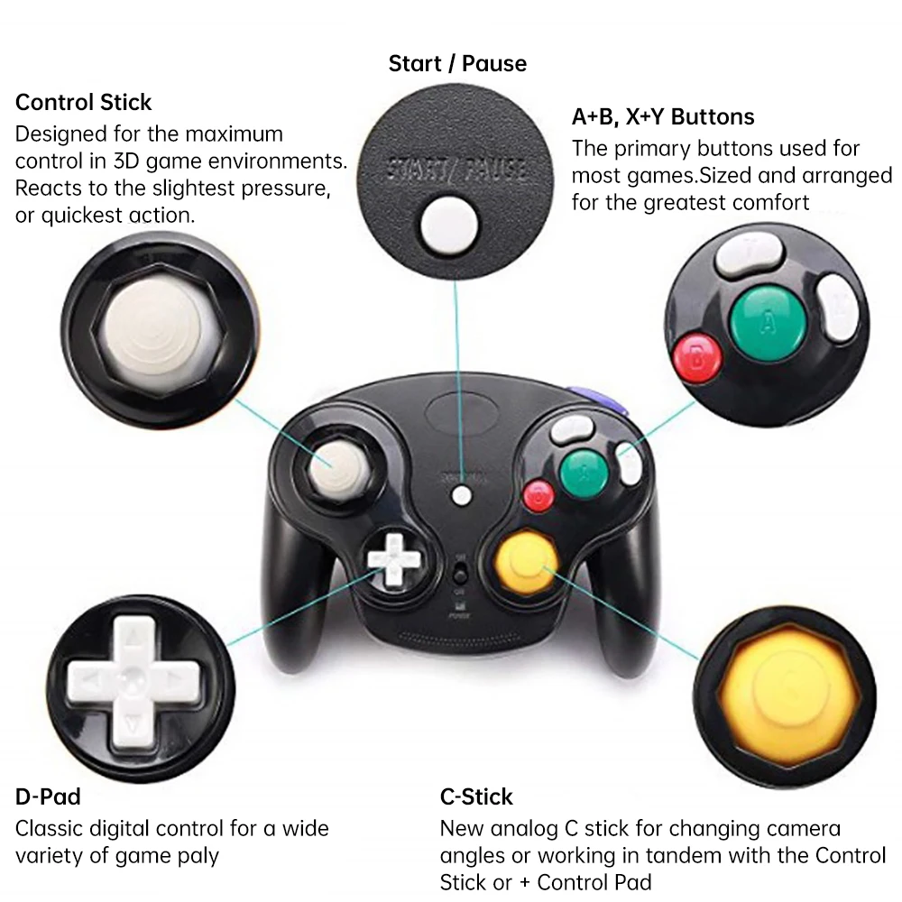 5 Colors Wireless Game Controller for NGC Game Console 2.4GHz Adapter Gamepad Joystick for Game-Cube Video Control