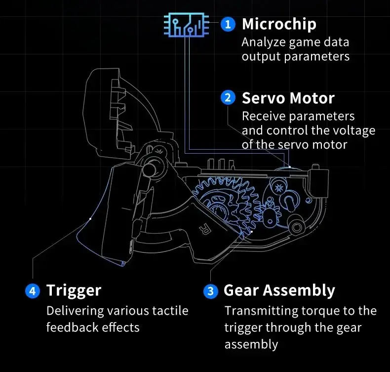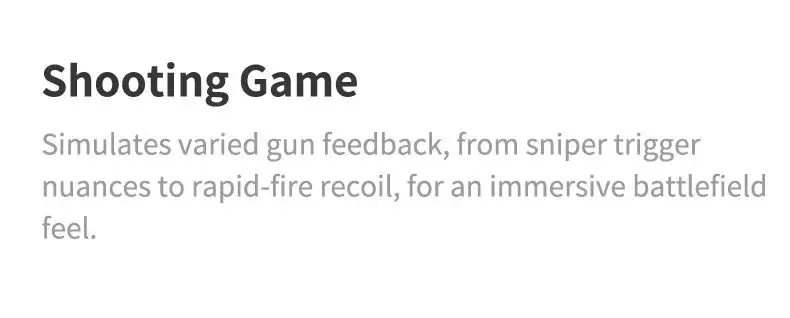 3.Acionador de feedback de força: fornece feedback de impacto delicado, tornando o jogo ao seu alcance.
