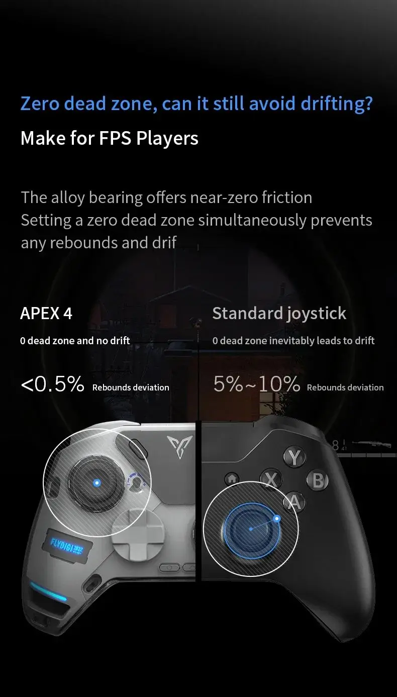 1.O controlador de jogos Flydigi Apex 5 é um controlador de jogo de elite de alto desempenho e altamente envolvente, um trabalho fino.Ele remodela o limite de controle com um sistema de força, permite uma experiência suave de segundo a segundo com desempenho (françado) e sincroniza as emoções do jogo com algoritmos finamente ajustados.