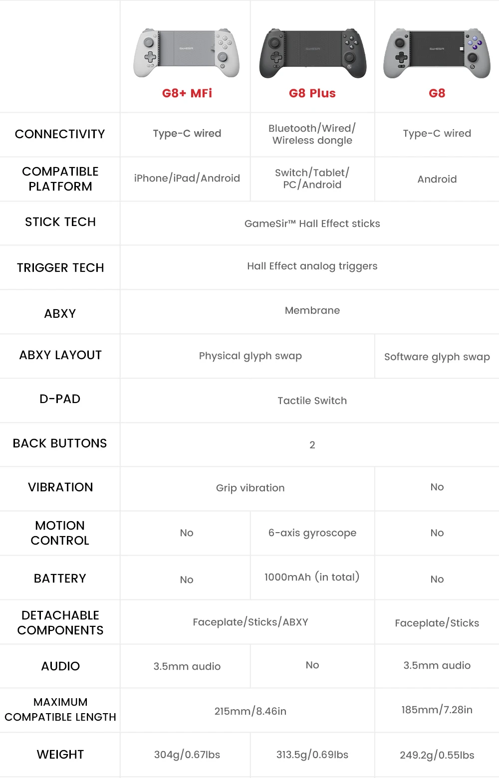 - > Controlador de jogos móvel com fio GameSir G8 + MFi para iPhone, iPad e Android Hall Effect Joystick Trigger, taxa de pesquisa de 1000 Hz