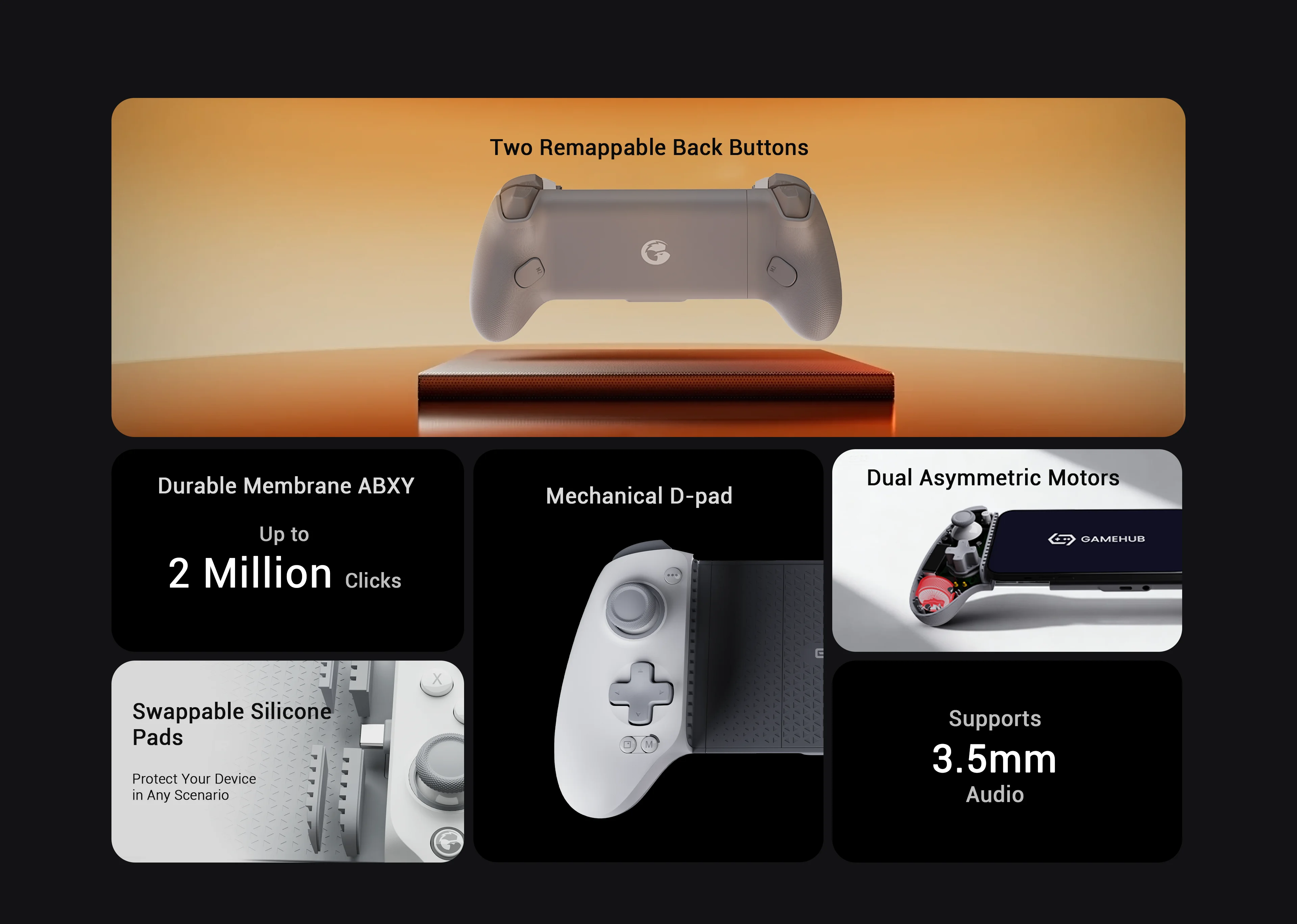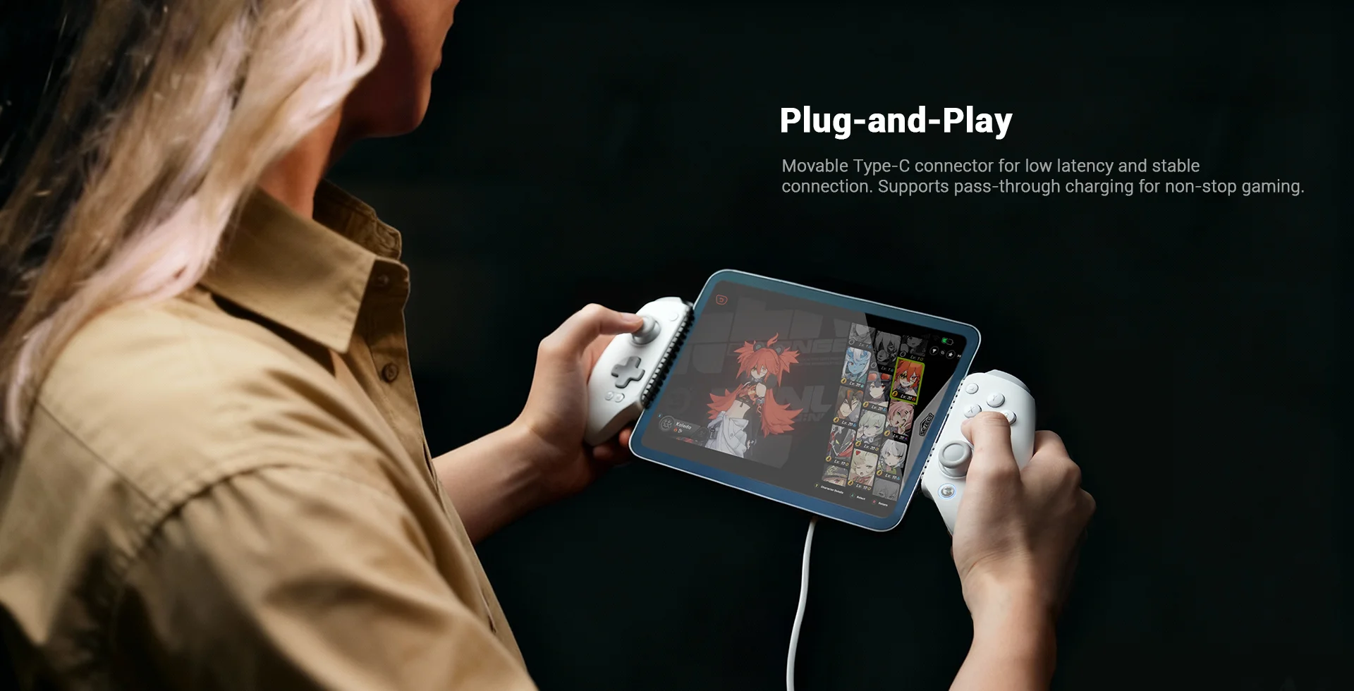 O conector Tipo C móvel garante uma conexão segura e de baixa latência e suporta carregamento de passagem para jogos ininterruptos.O design da almofada de silicone trocável oferece proteção adicional para o seu dispositivo em todos os cenários.