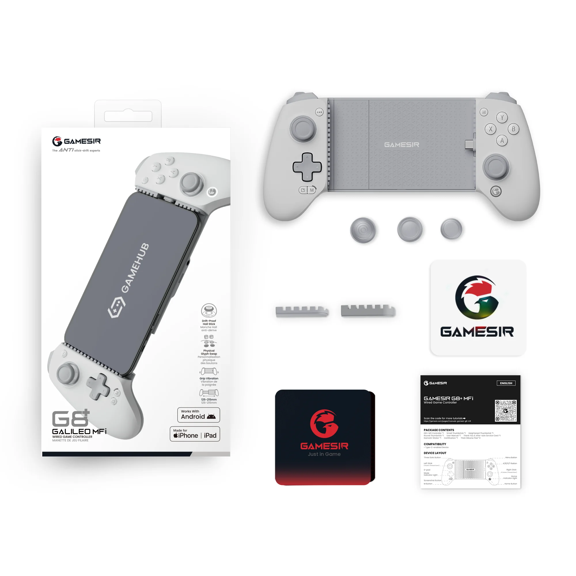 Experimente jogos em nível de controlador de console no celular com o GameSir G8+ MFi, um controlador com fio Type-C premium projetado para iPhone, iPad e Android.Certificação oficialmente MFi, garante compatibilidade perfeita e desempenho confiável.Apresentando um design minimalista em cinza e branco, combina perfeitamente estilo com funcionalidade, atualizando sua experiência de jogo e funciona como um acessório elegante.