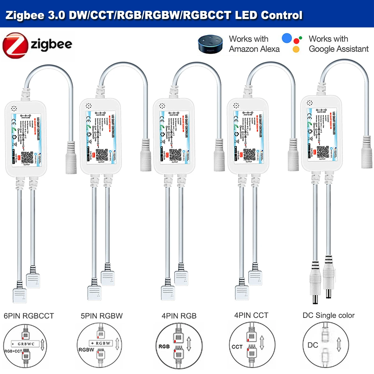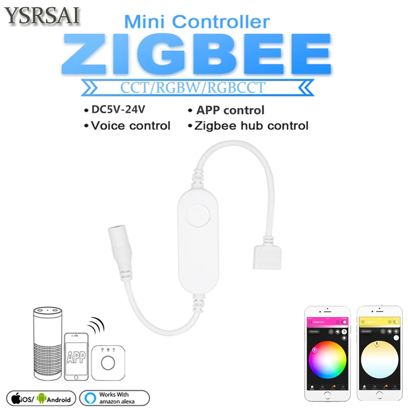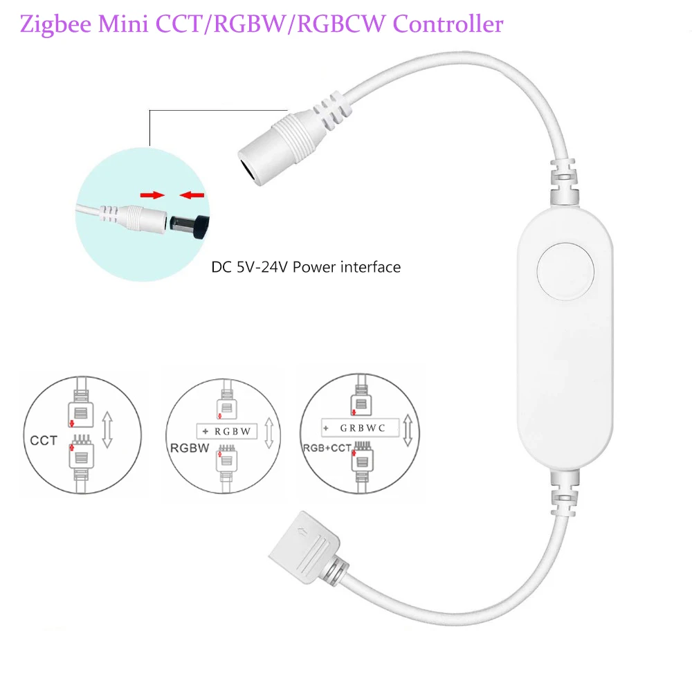 - > Controlador de LED Inteligente Mini Zigbee RGB+CCT/RGBW/CW DC5V 12V 24V com Controle por Voz para Echo Plus SmartThings Zigbee 3.0