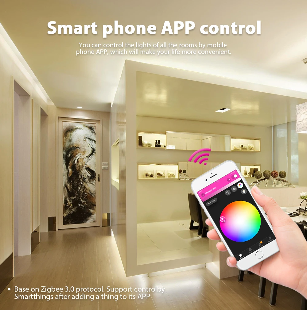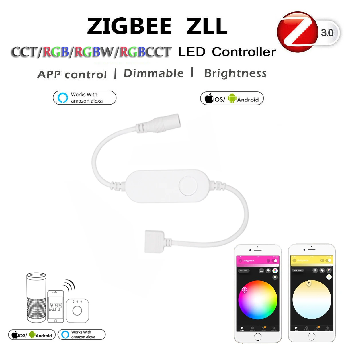 This new generation of CCT/RGBW/RGBCCT controller works with the ZigBee ZLL standard and is therefore compatible with many common ZigBee hubs/gateways,