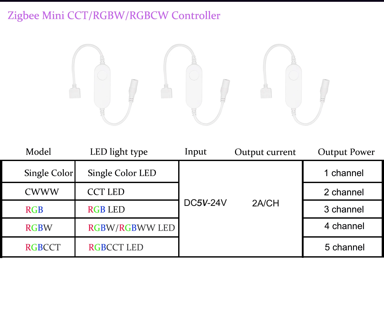 Item Type: CCT/RGBW/RGBCW Controler