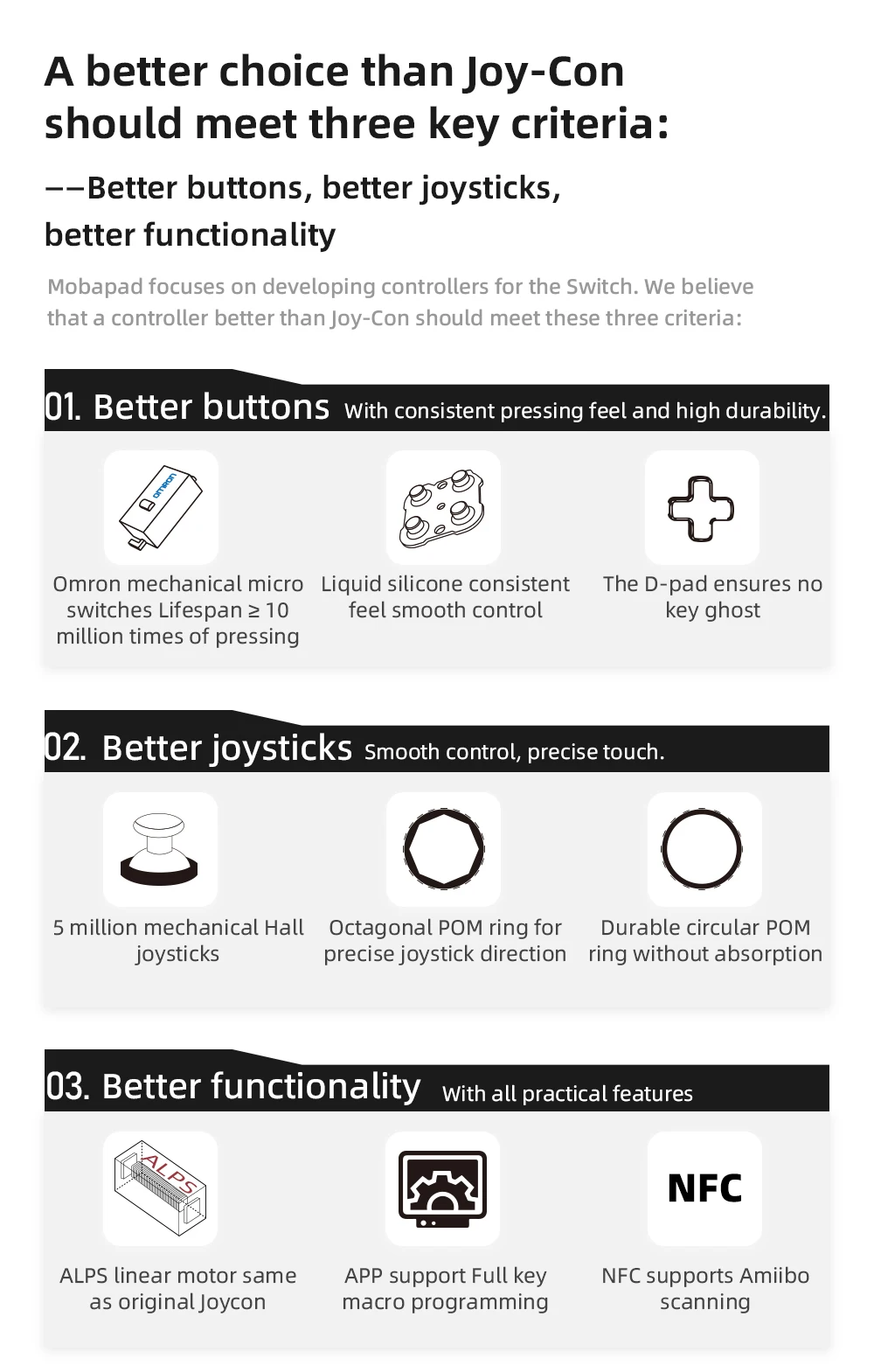 - > Controlador MOBAPAD M6 HD Gemini 2, gamepad esquerdo e direito para Nintendo Switch Joypad com console de joystick Hall para NS OLED