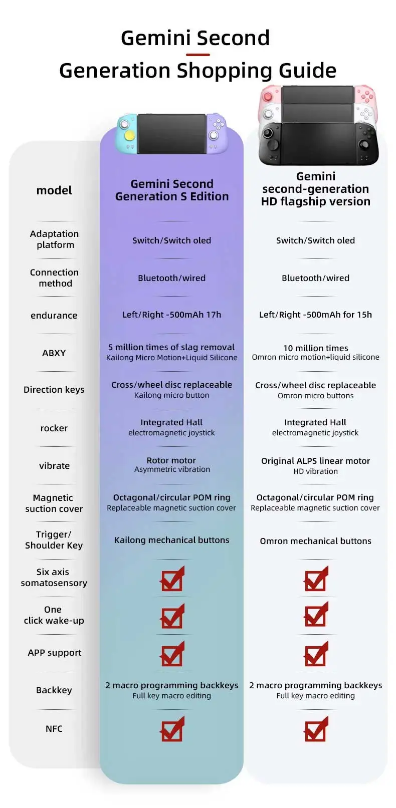 Mobapad m6 hd gemini 2 controlador, gamepad esquerdo e direito para nintendo switch joypad com console de joystick hall para ns oled