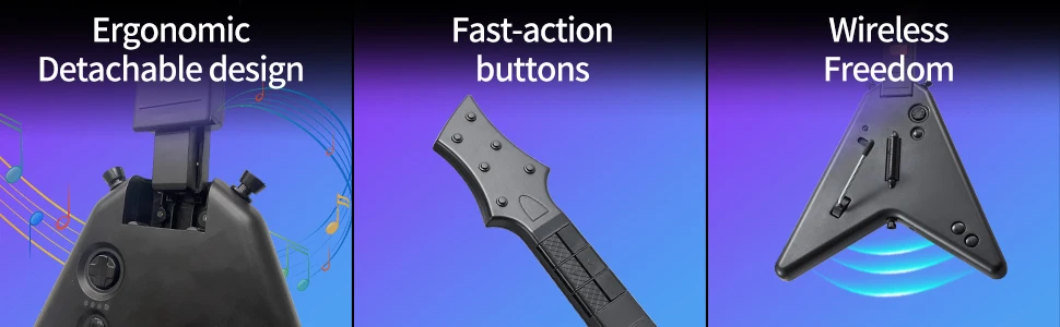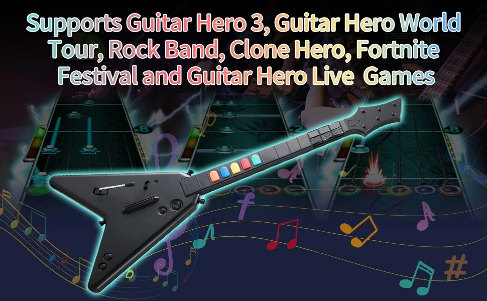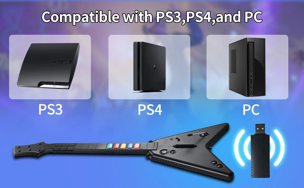 - > Controlador Sem Fio 2.4G Guitar Hero para PC, PS3, PS4, Compatível com Clone Hero e Rock Band, Joystick Remoto para Console