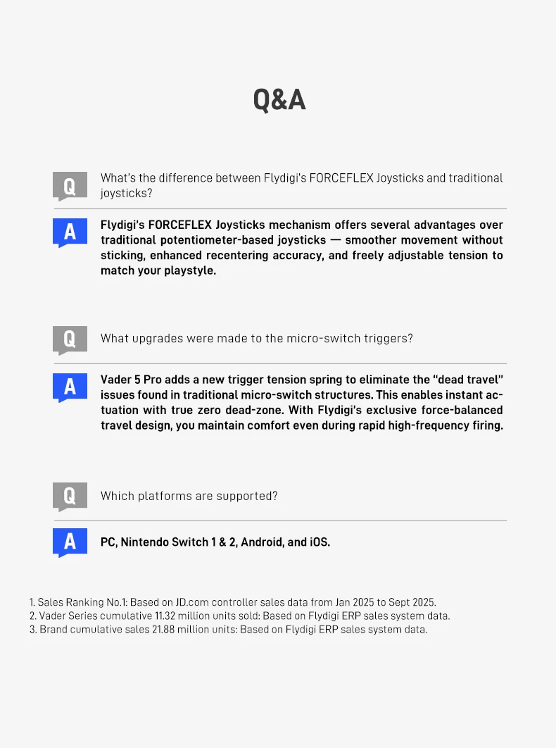 - > Controle de Jogo Flydigi Vader 5 Pro com Hall Rocker e Vibração para NS, Celular, TV e PC