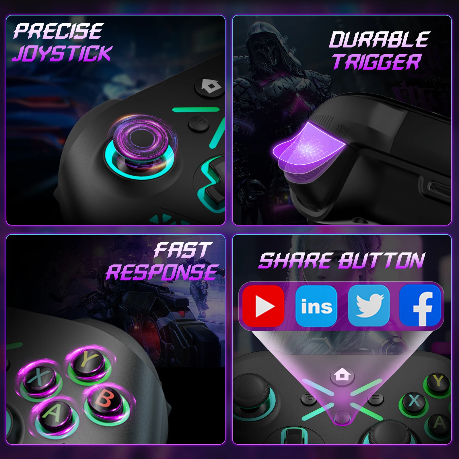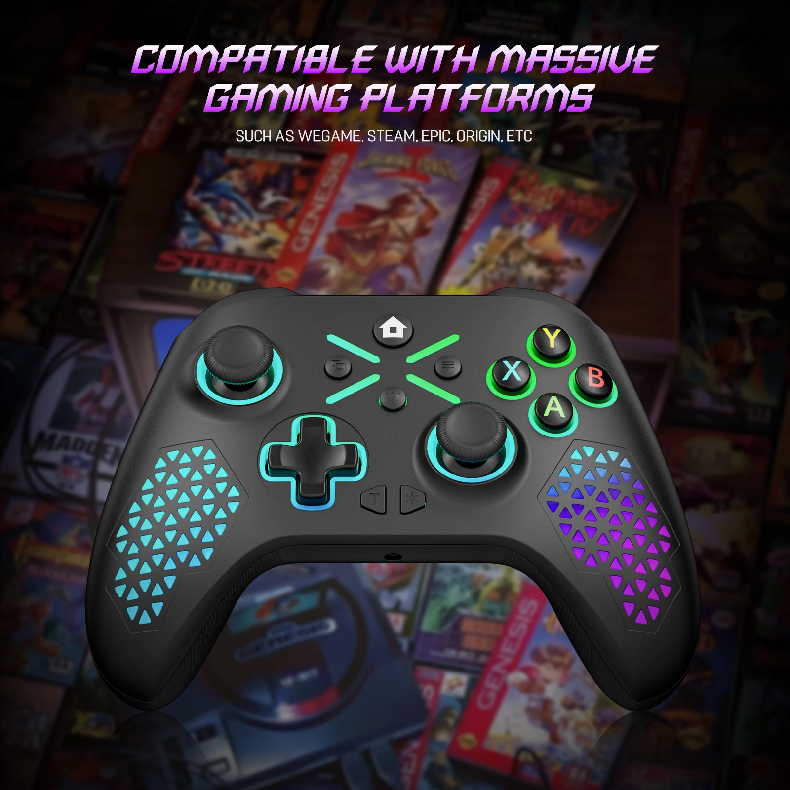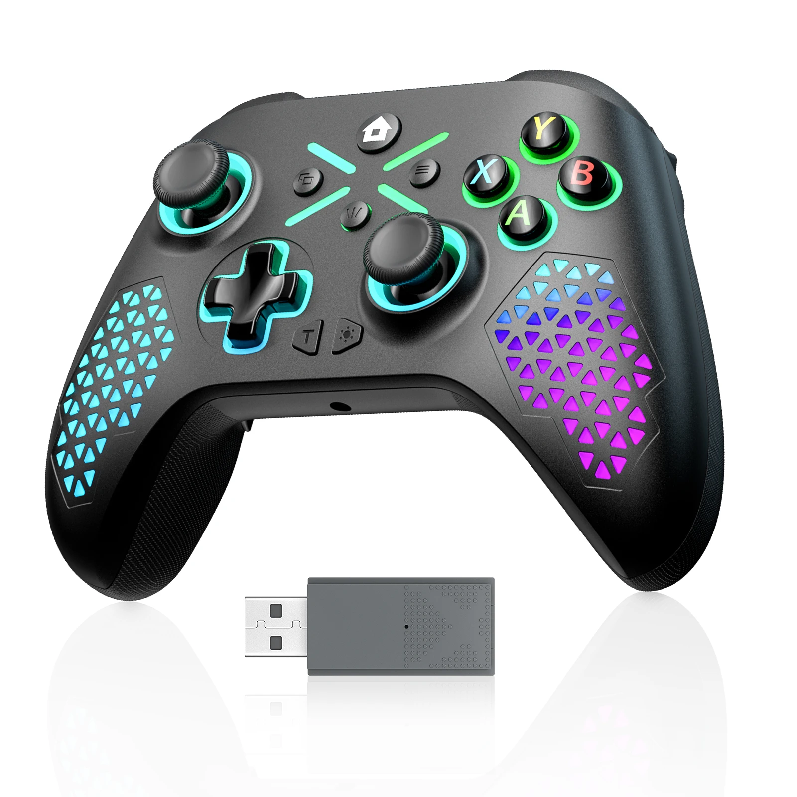 - > Controle para Xbox One/Series S/X/Android/PC Console, Gamepad Sem Fio 2.4G com RGB, Vibração Dupla e Turbo