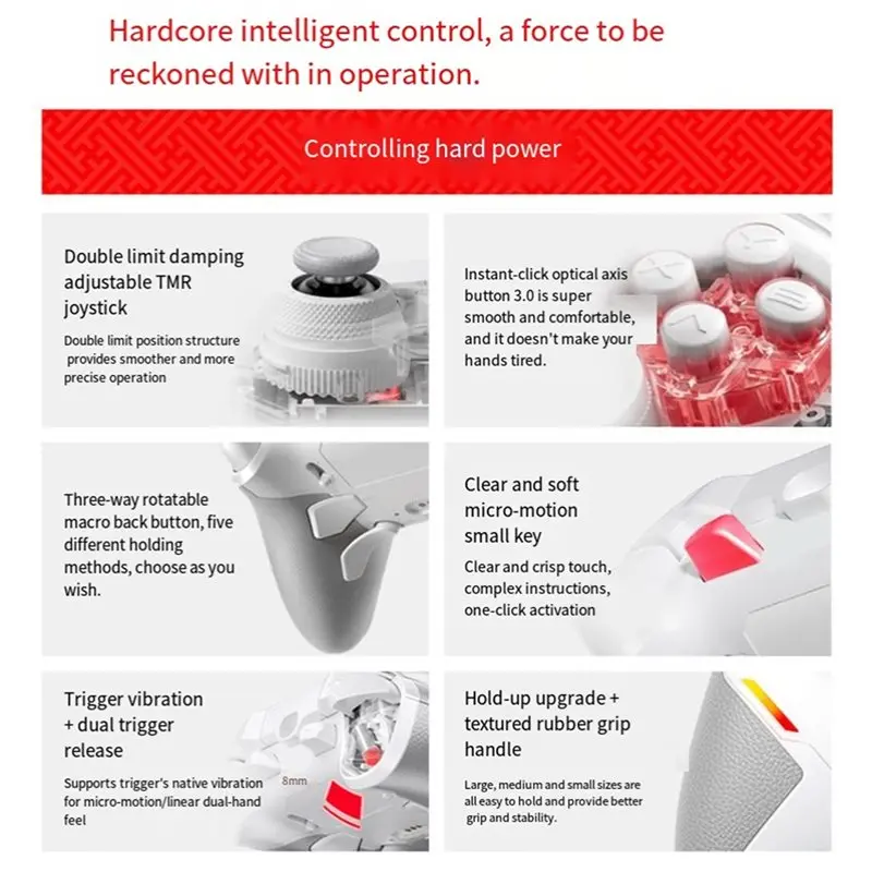 Precisão Encontra Experiência de Jogo de Nível Profissional: latência ultrabaixa com o receptor de 2000Hz, joysticks TMR ajustáveis e gatilhos de curso duplo para controle responsivo e realista.