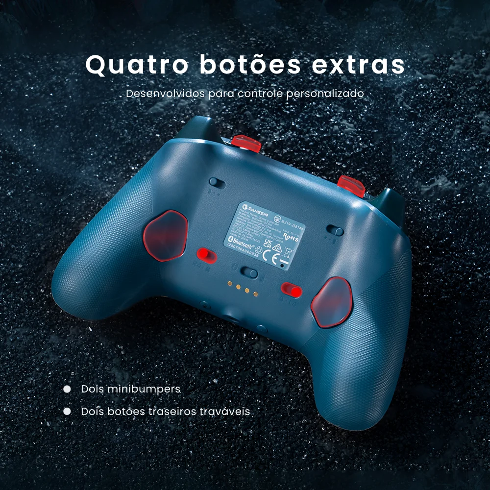 Tem 4 motores de rumble, um em cada aderência e gatilho, fornecendo feedback háptico imersivo.