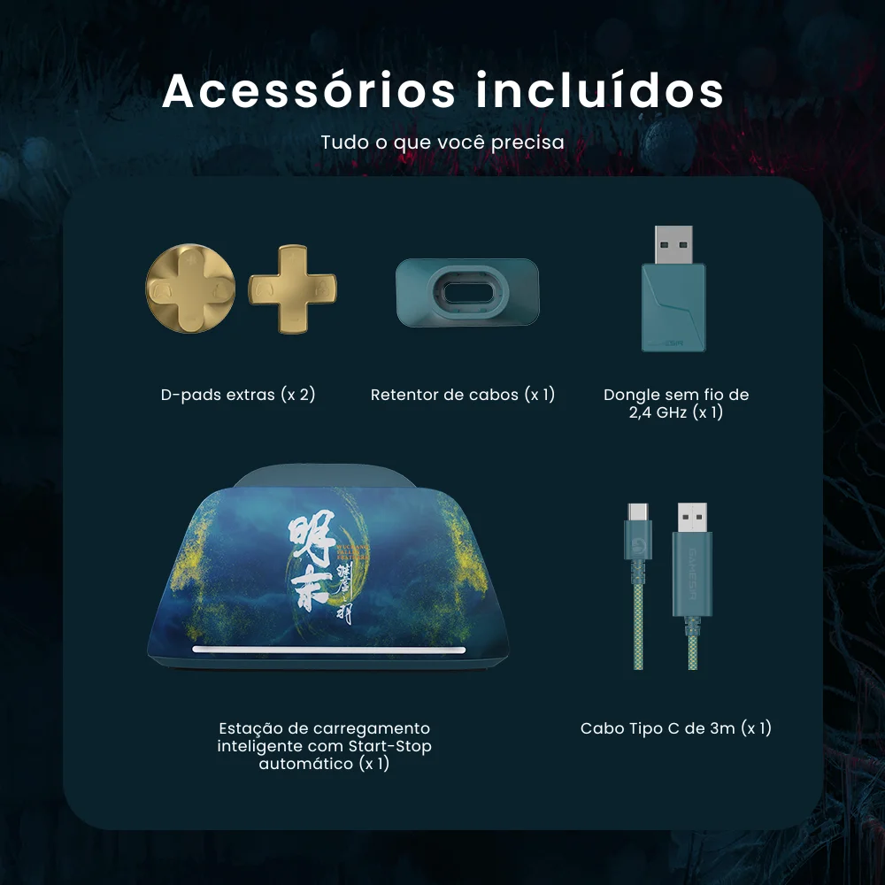 Em colaboração oficial com Wuchang: Penas caídas, este controlador desenha profundamente do espírito do jogo, echando a luta implacável do destino da Wuchang.Ambos a placa frontal e da estação de carregamento incorporados pelo poder das habilidade de combate [Skyborn Might] de Wuchang.A placa frontal mostra uma silhueta etérica de Wuchang, enquanto as apertos levam inspiração da armadura da escala de dragão apresenta no traje [Resurância Draconica], aprimorada com texturas de resina UV em camadas para adição de toque.Altogether, este controlador é mais do que uma ferramenta, mas sua companheiro confiável na jornada no desconhecido.