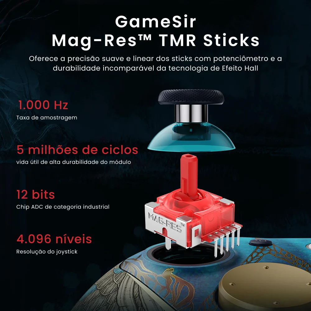 4.GameSir Mag-Res™ Bastões TMR, controle suave e vida útil ultra longa