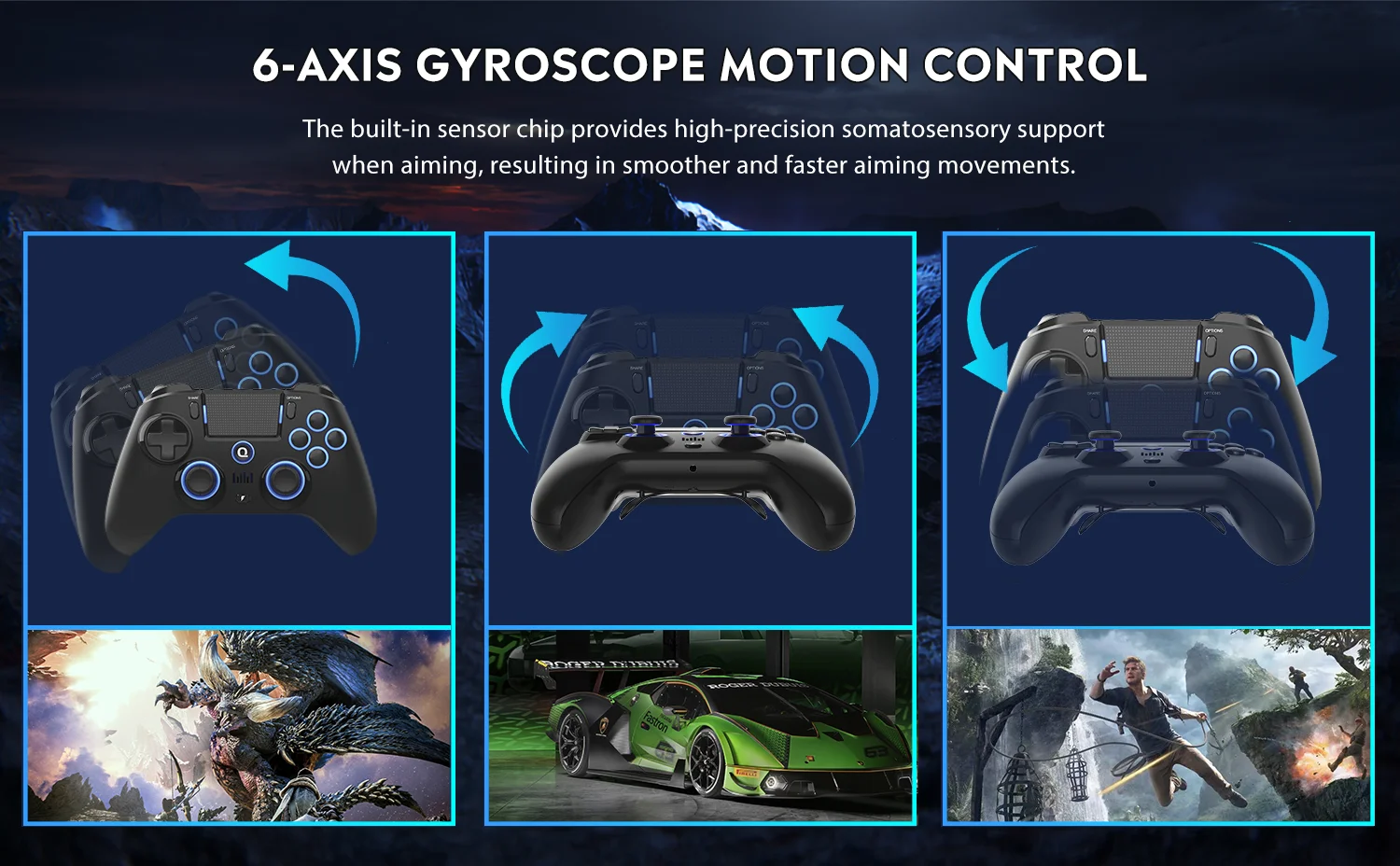 ● Compatibilidade UniversalNosso controlador foi projetado para compatibilidade perfeita com uma ampla gama de dispositivos, incluindo PS4, PS3, PS2, PC e plataformas móveis.Oferece compatibilidade total com todos os jogos PS4 quando usado com um PS5, garantindo que você possa aproveitar todas as funções do controlador.(Mas você não pode jogar jogos PS5 com ele no PS5, não é um controle específico para PS5.)