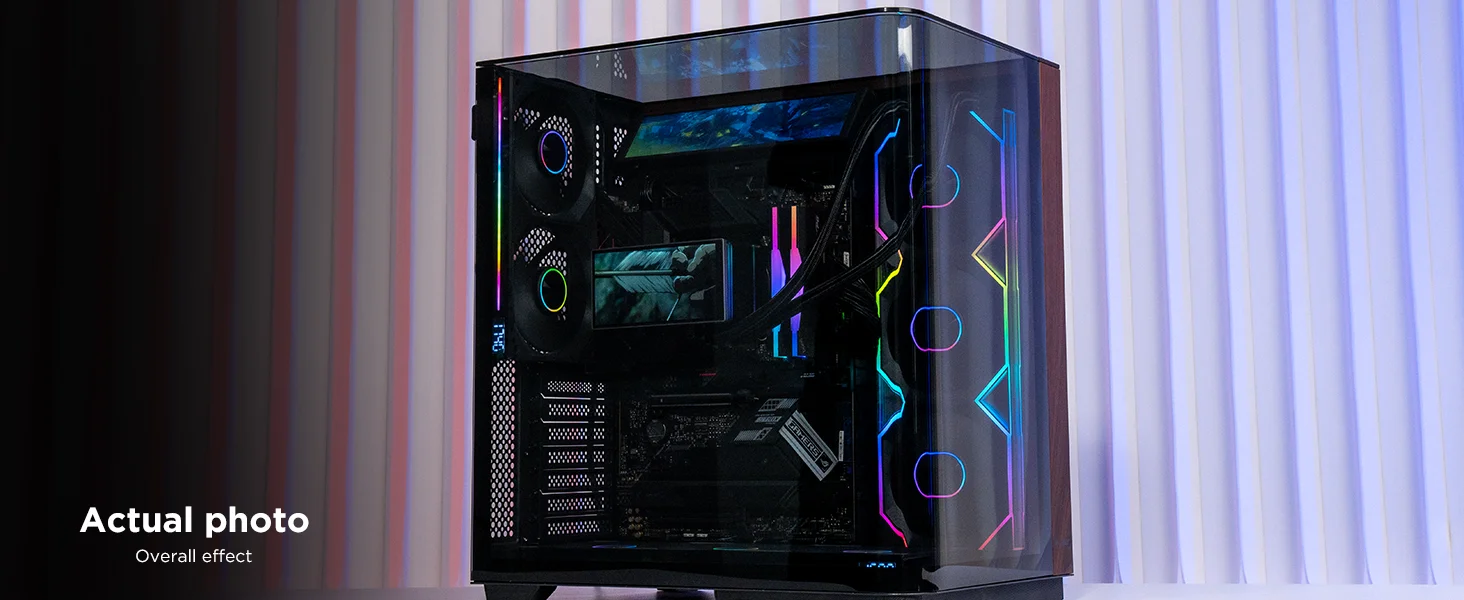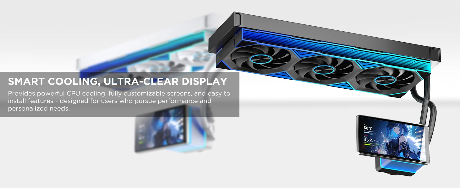 A bomba de água é cercada por um anel duplo de iluminação ARGB, feito de um painel acrílico altamente transparente para um brilho ainda mais deslumbrante.Um sensor magnético está incluído na parte superior da bomba para ângulos de tela ajustáveis.