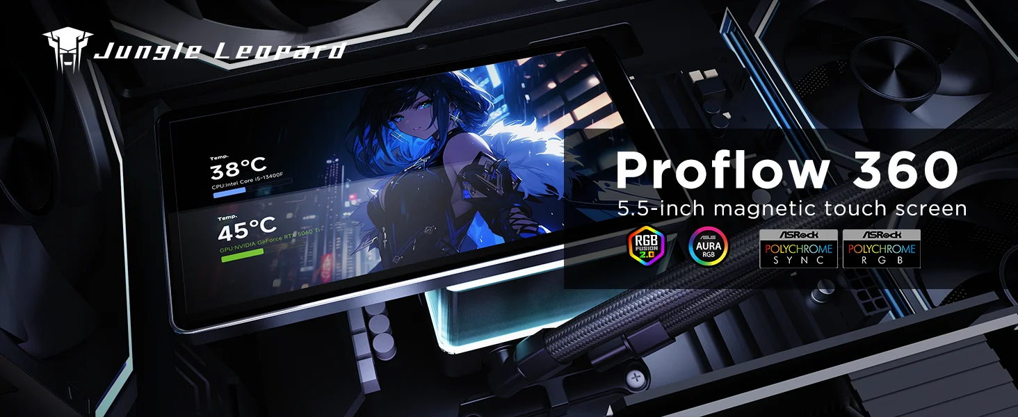 - > Cooler de Água para CPU 360mm/240mm com Tela LCD Personalizável de 5.5 Polegadas 5V3pin PWM Espelho Infinito Dupla Face Jungle Leopard Pro Flow