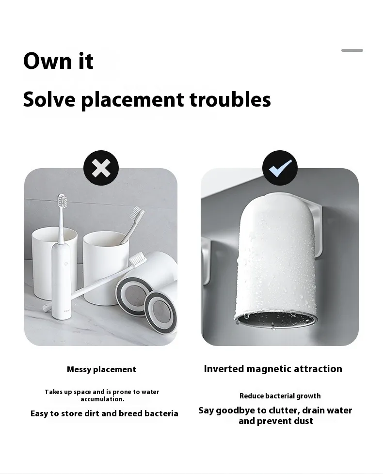 Copo magnético do enxaguatório bucal de aço inoxidável 304, copo fixado na parede da escova de dentes, copo de água doméstico não perfurado, grande capacidade