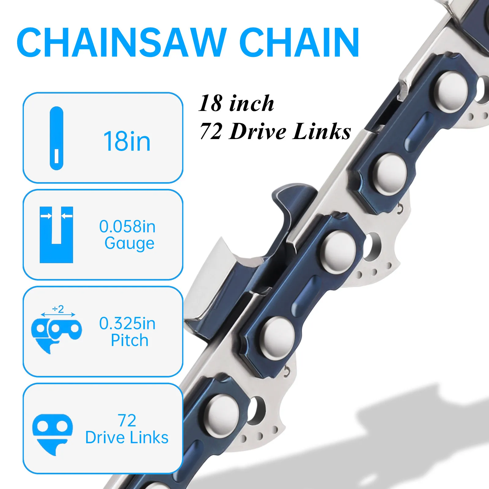 - Compatibilidade universal: Adapta-se à maioria das marcas de motosserras que executam das mesmas especificações.Adequado para Husqvarna Stihl Poulan; Adequado para Makita Homelite Blue Max; Adequado para McCulloch Craftsman John Deere.
