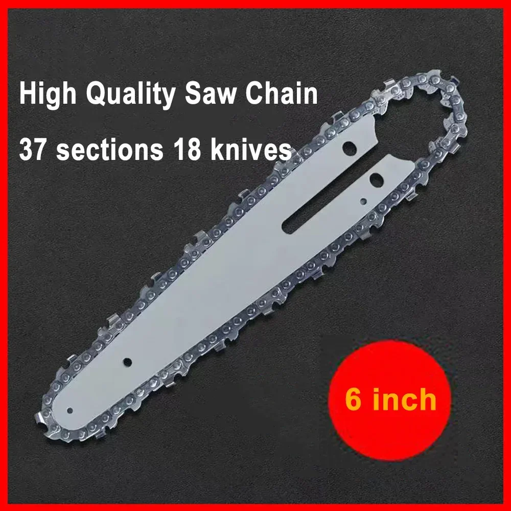 - > Corrente de serra de 6 "para mini motosserra, mini correntes de aço, motosserras elétricas, 37 nós, 18 facas, acessório de substituição de corrente