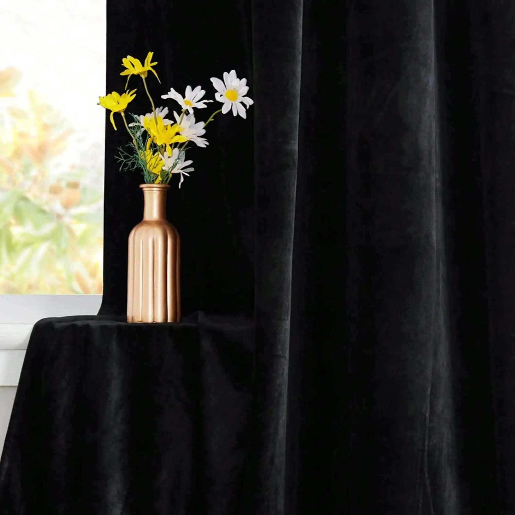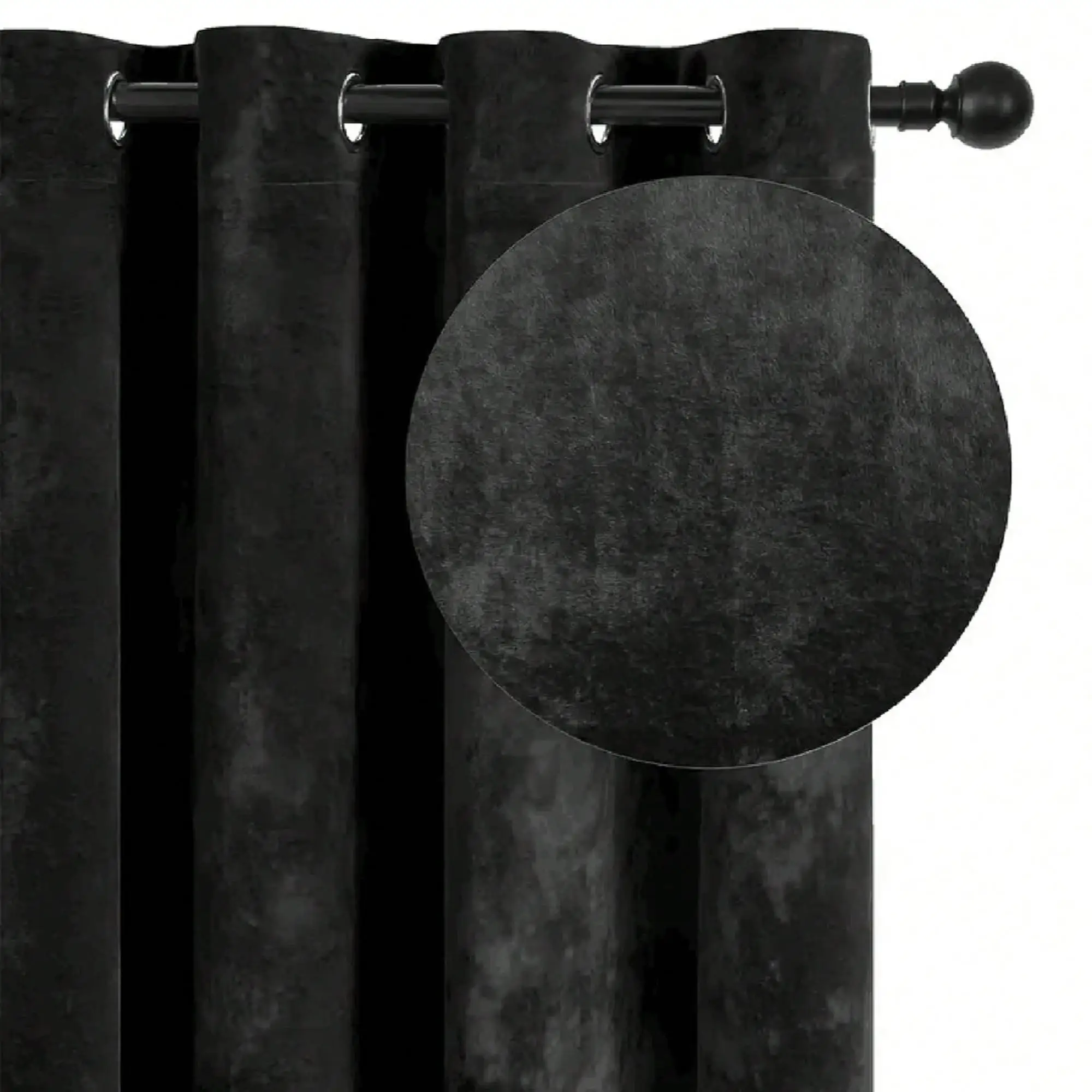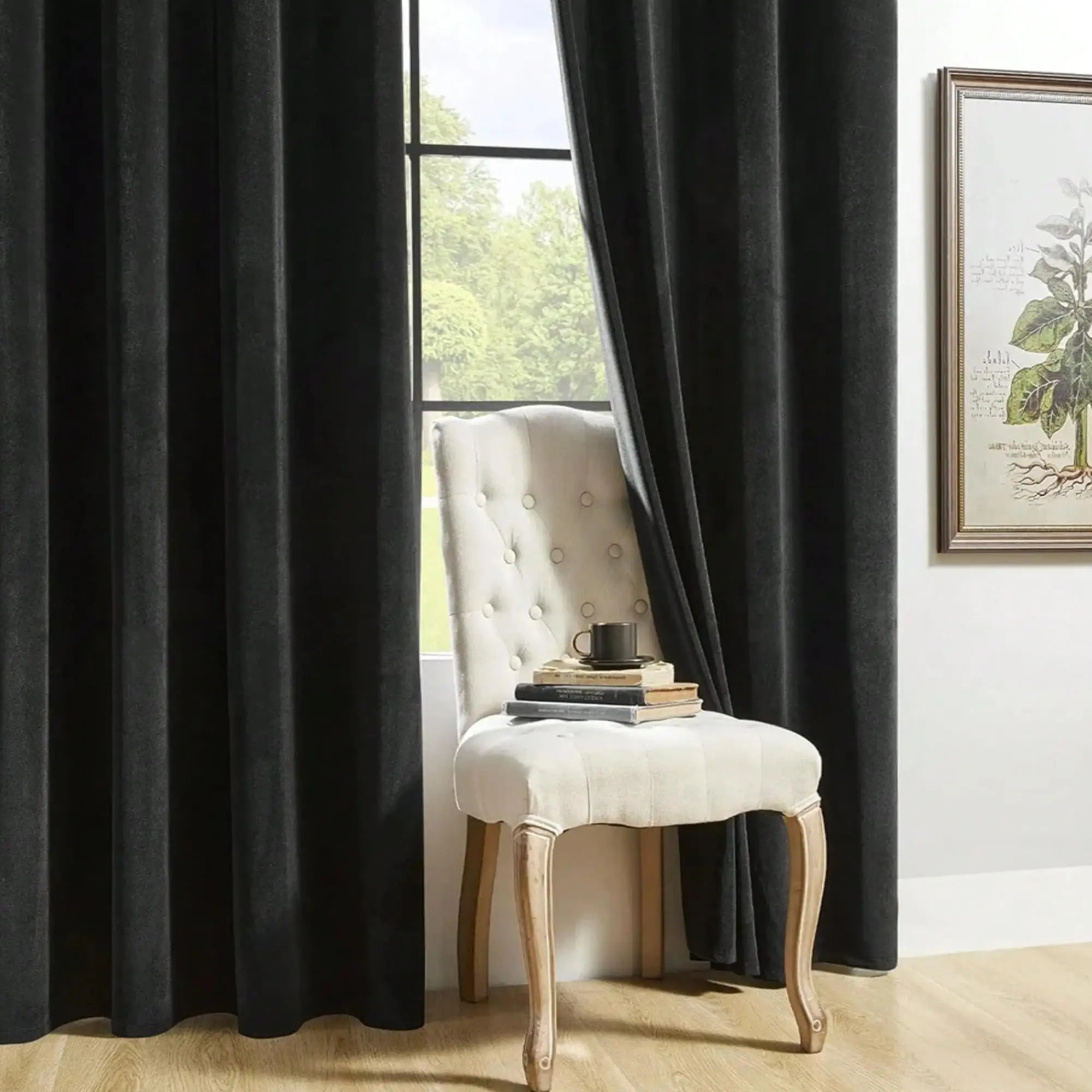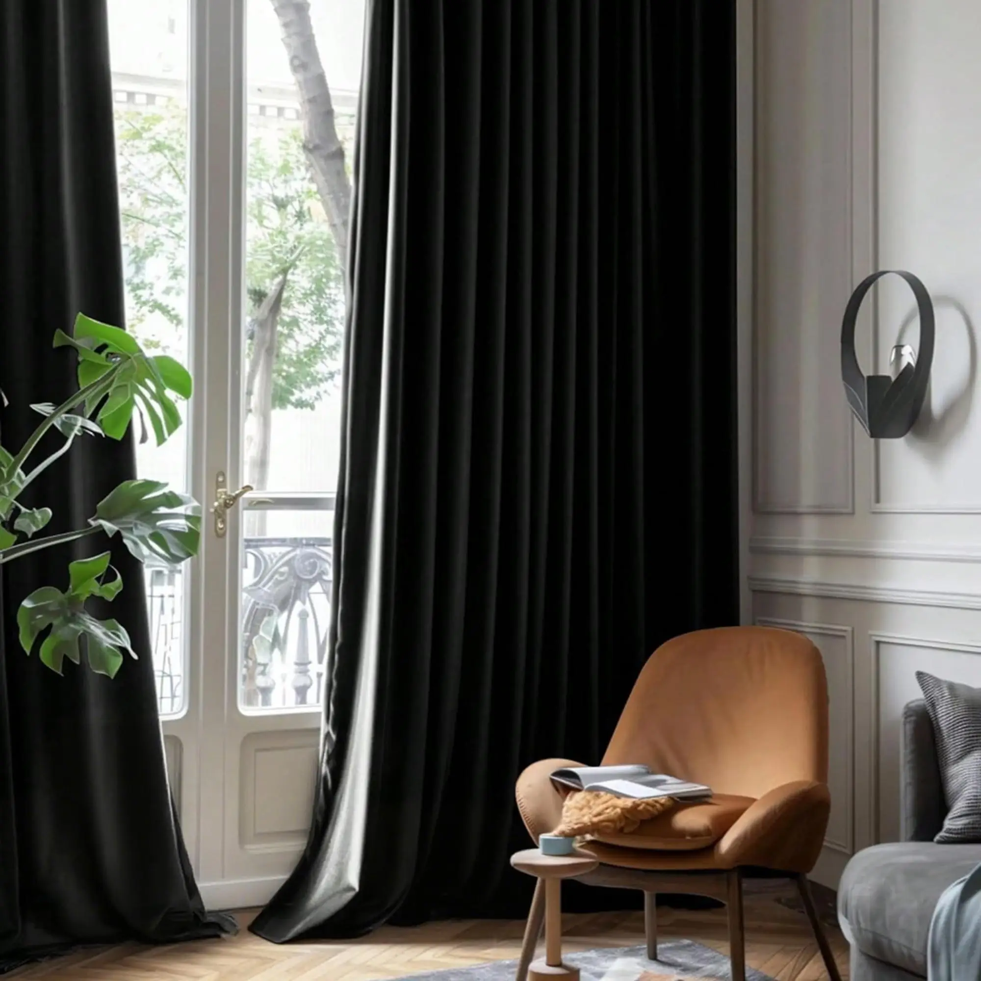 Cortina Blackout de Veludo Preto, Bloqueio de Luz, Proteção UV, Isolamento Térmico, Cortinas Grossas para Sala de Estar, Quarto, Escritório