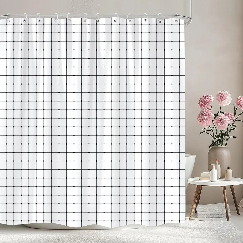 Cortina de chuveiro chevron de cor sólida, linhas pretas e brancas, formas geométricas, estilo simples e moderno, cortina de banho de poliéster, decoração de banheiro
