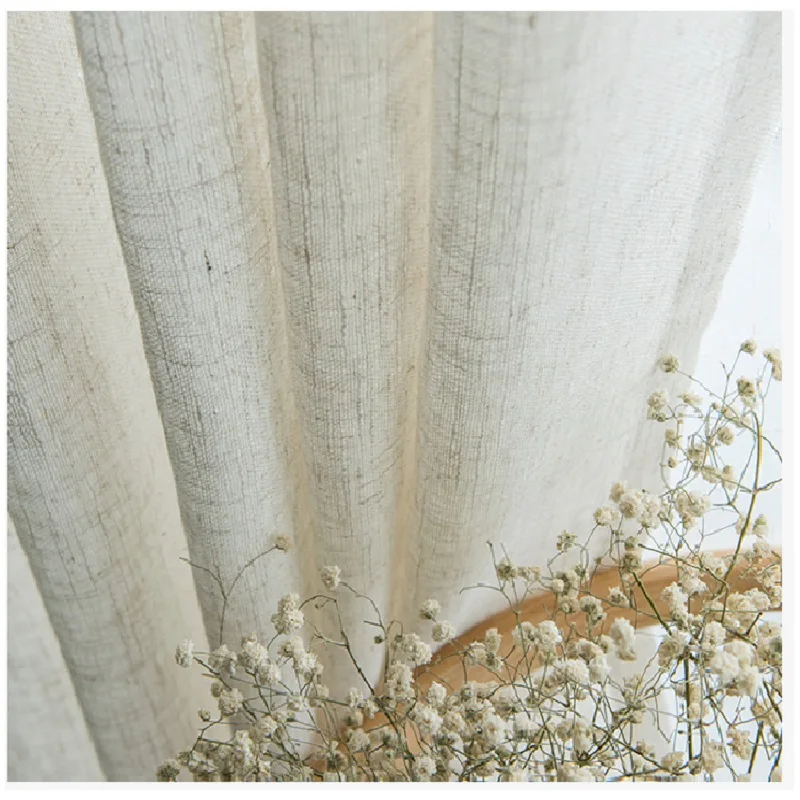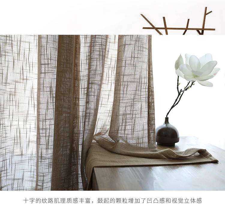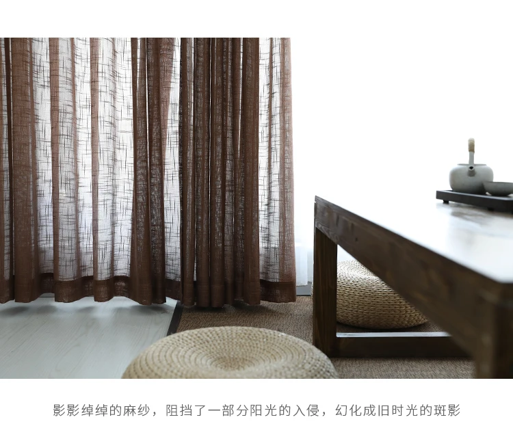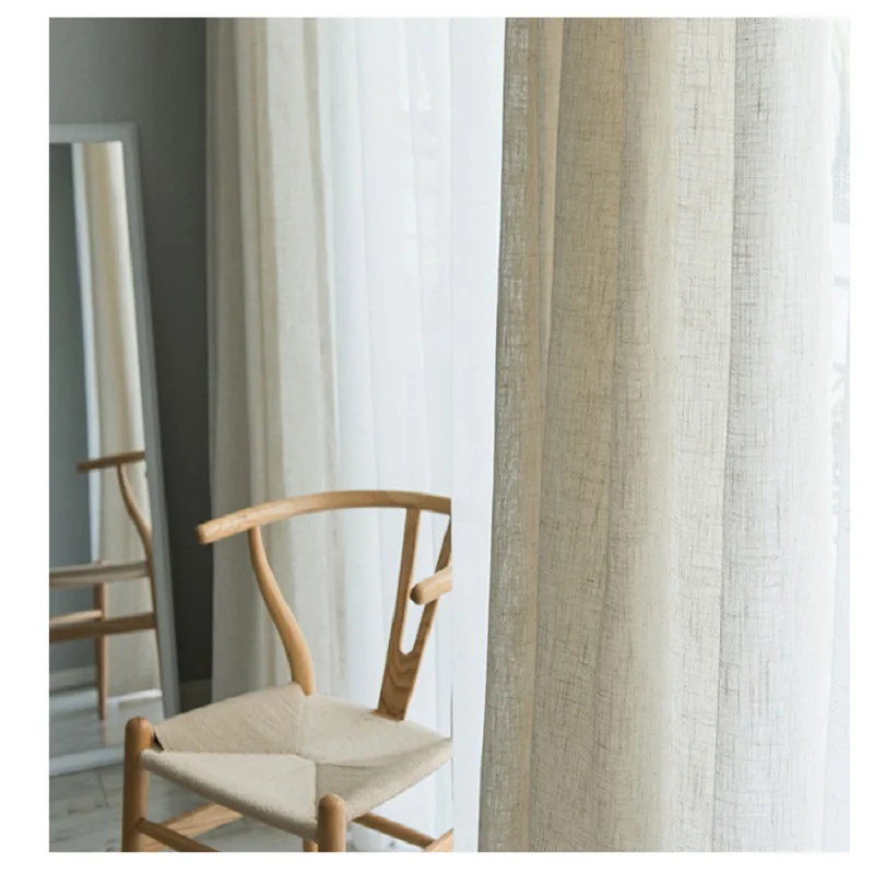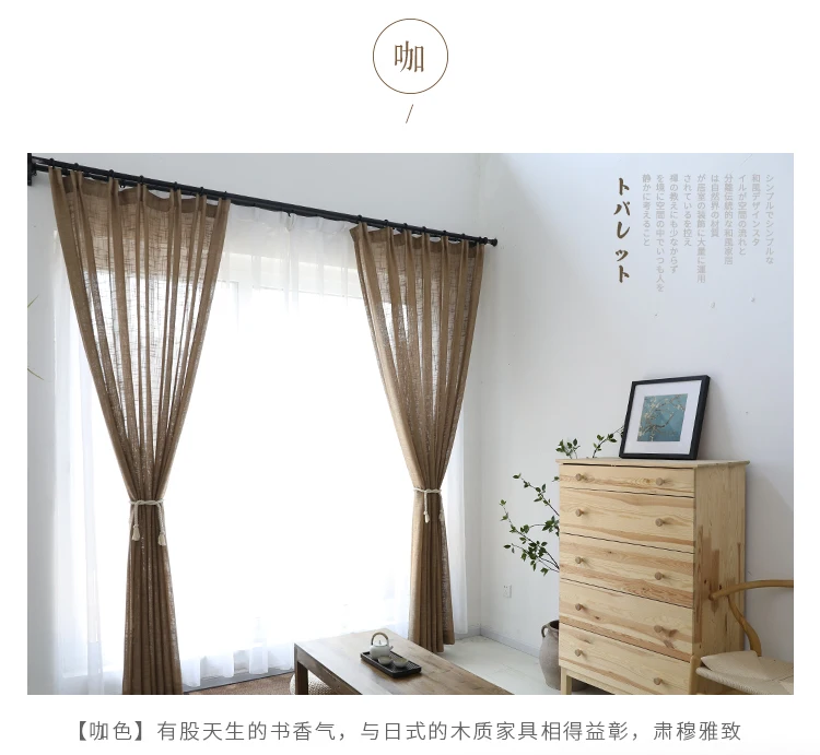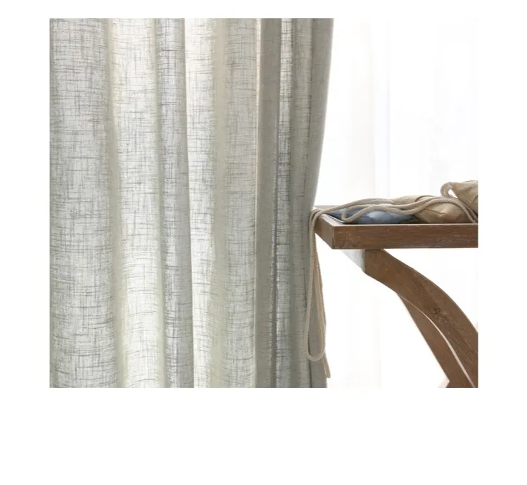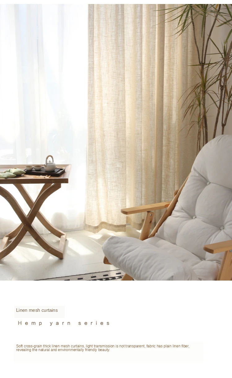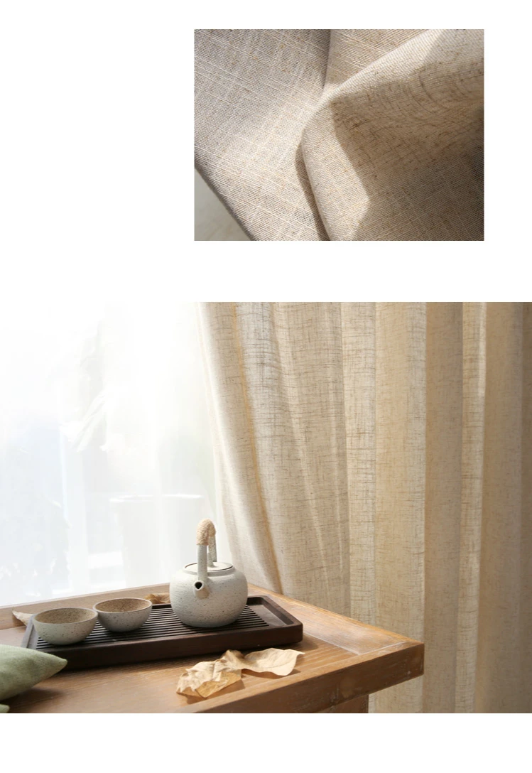 Cortina de linho semi-sombreada estilo japonês, fio de cânhamo nórdico, cor pura, cortinas de linho, sala de estar, cortina personalizada