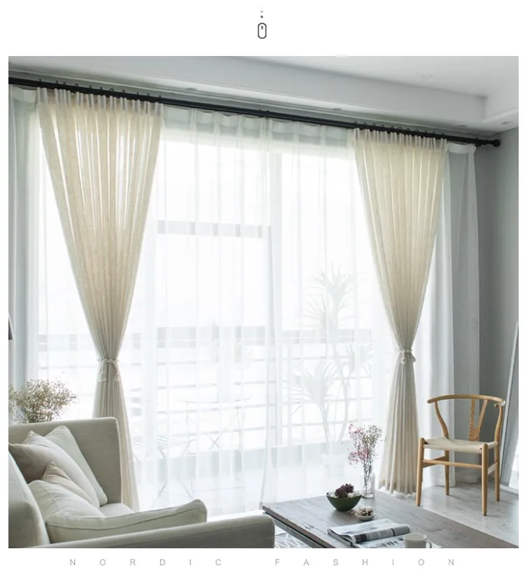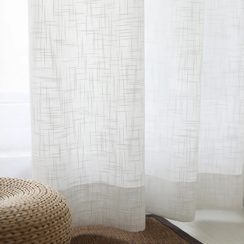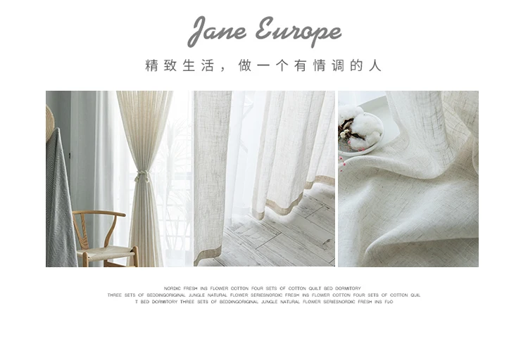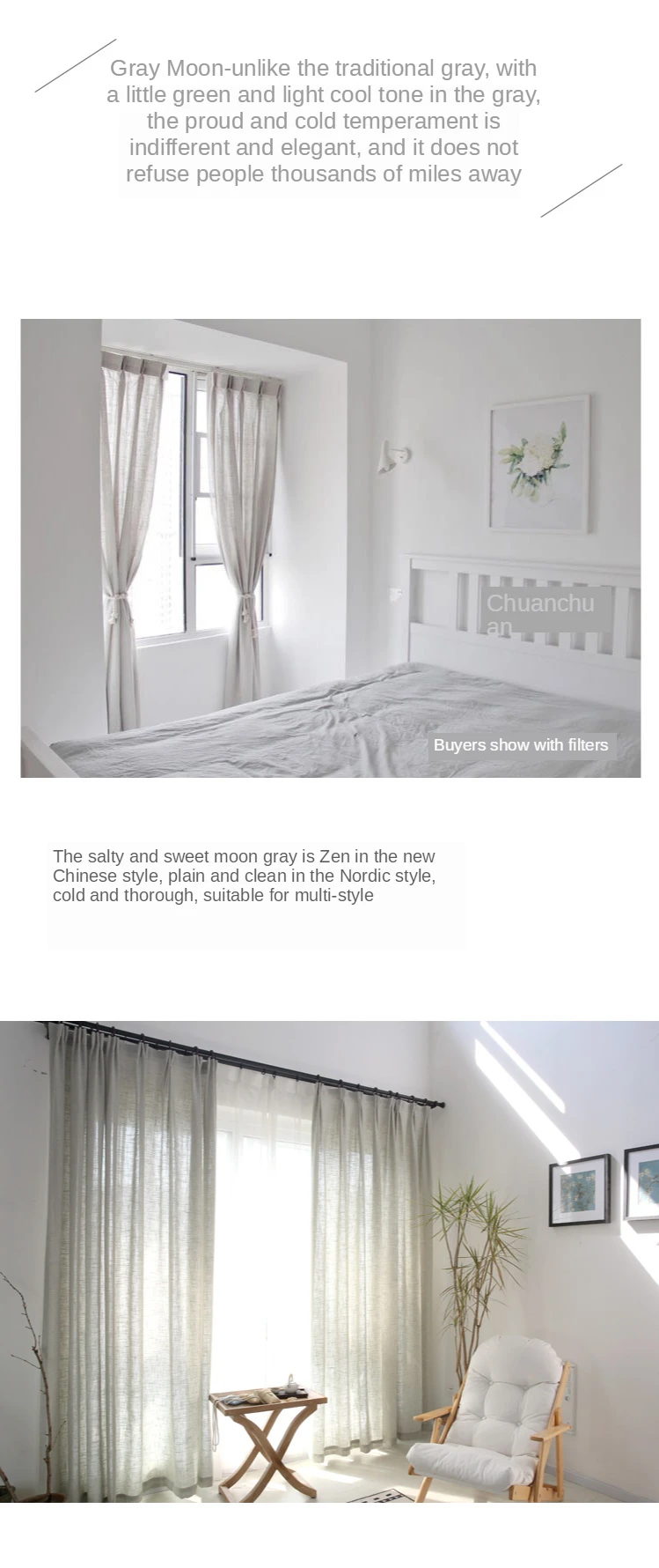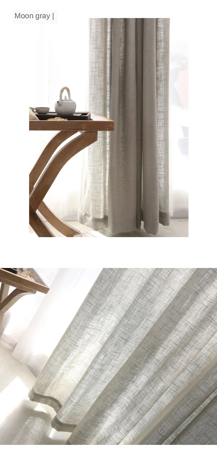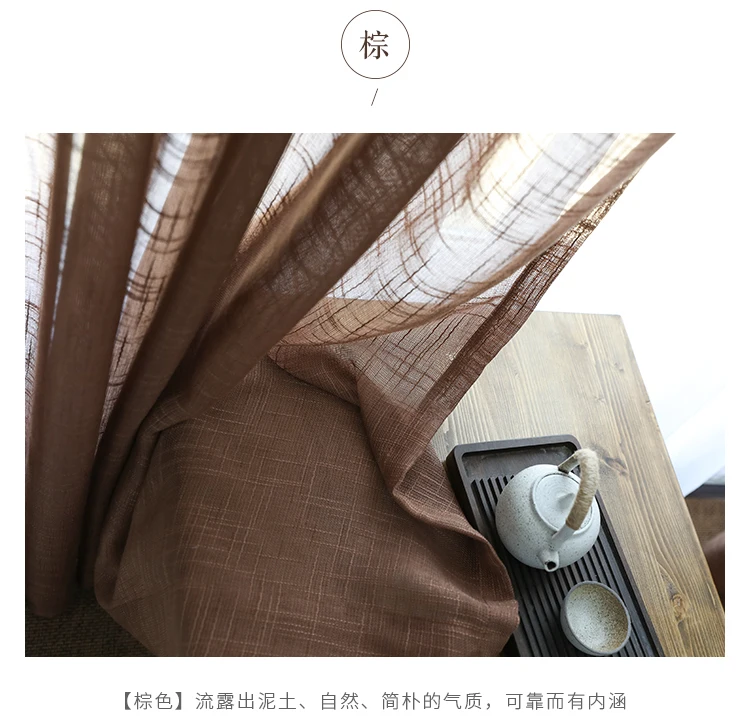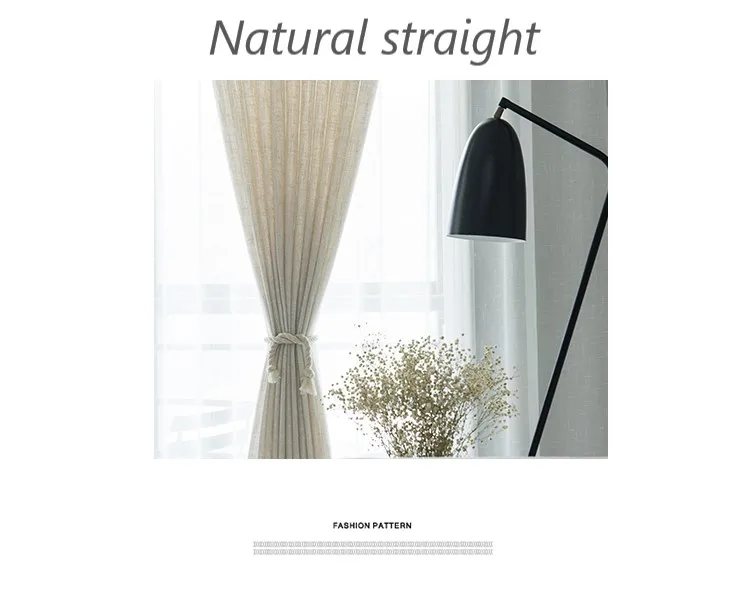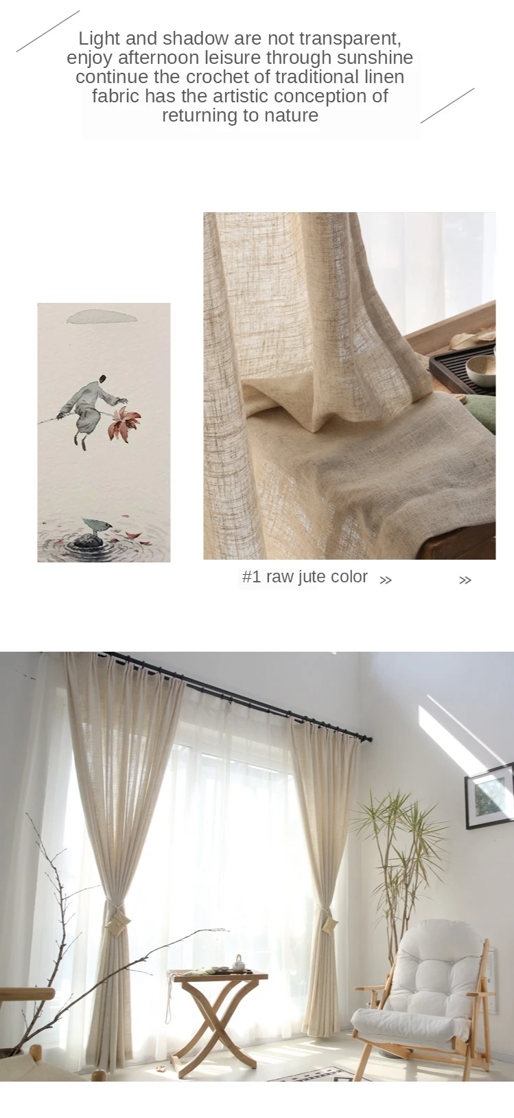 Cortina de linho semi-sombreada estilo japonês, fio de cânhamo nórdico, cor pura, cortinas de linho, sala de estar, cortina personalizada