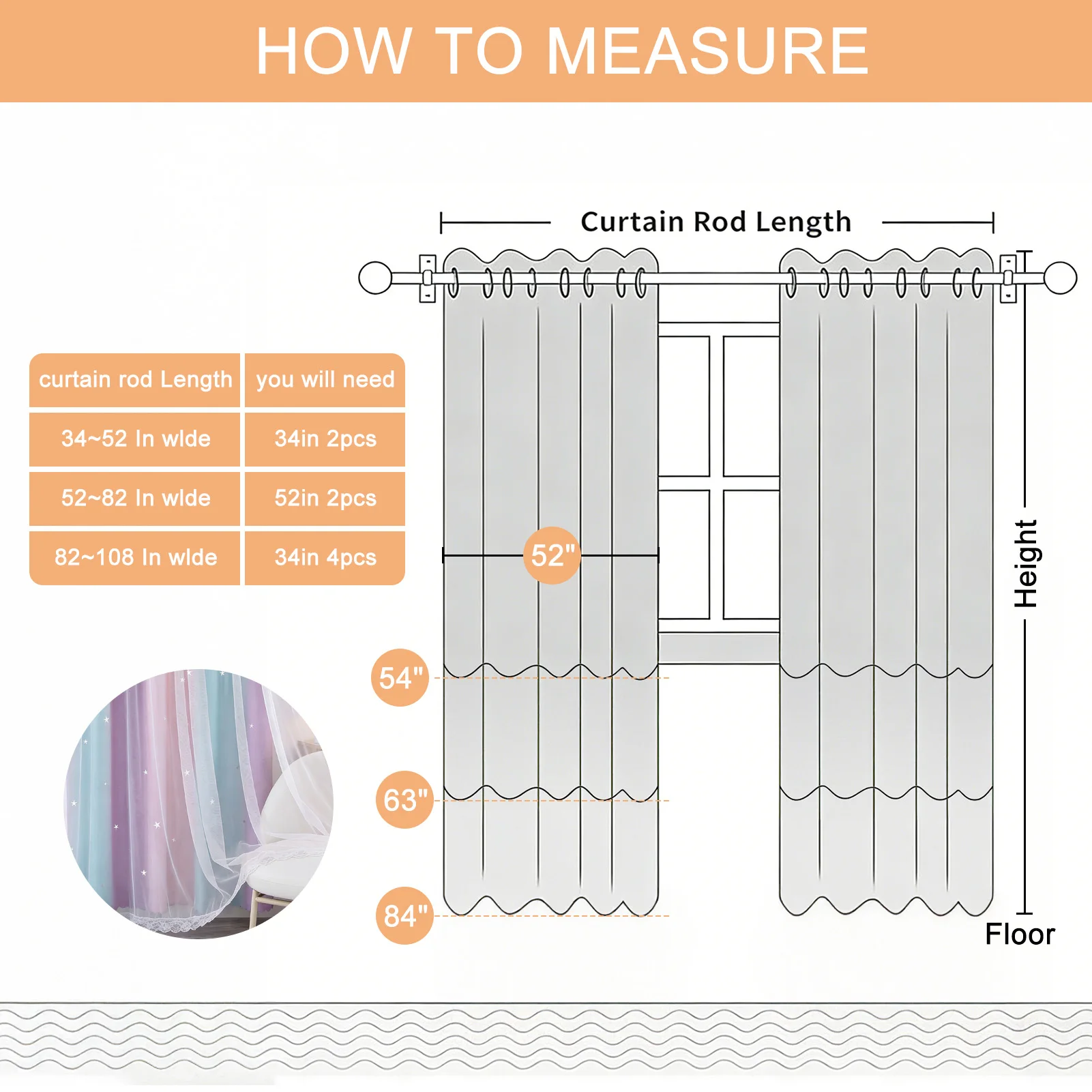 PACOTE:O pacote inclui 2 painéis e vem com 2 gravata, cada painel possui uma camada de cortina transparente e uma camada de cortina blackout impressa com estrelas recortadas a laser.Cada painel de cortina tem 8 ilhós na parte superior.O diâmetro interno de cada ilhó é de 1,6 polegadas e cabe na maioria das hastes padrão.