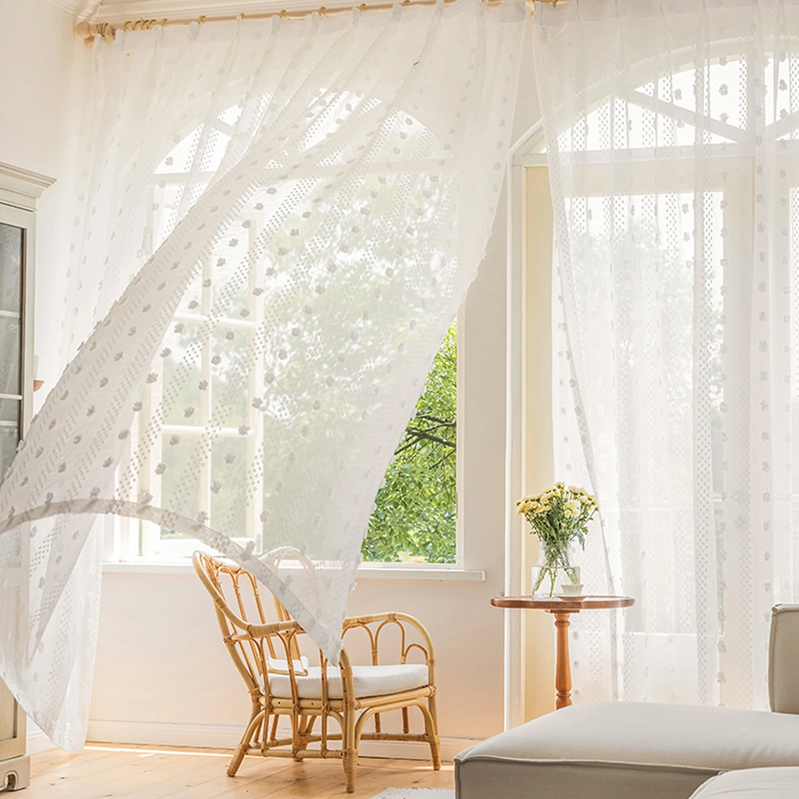 Cute Pompom---Stylish and unique design of pompom. Soft voile drapes invite light into the room while providing interior privacy at the same time. Create a pretty and modern addition to your home decoration. Good gifts for your parents, friends, and colleagues;