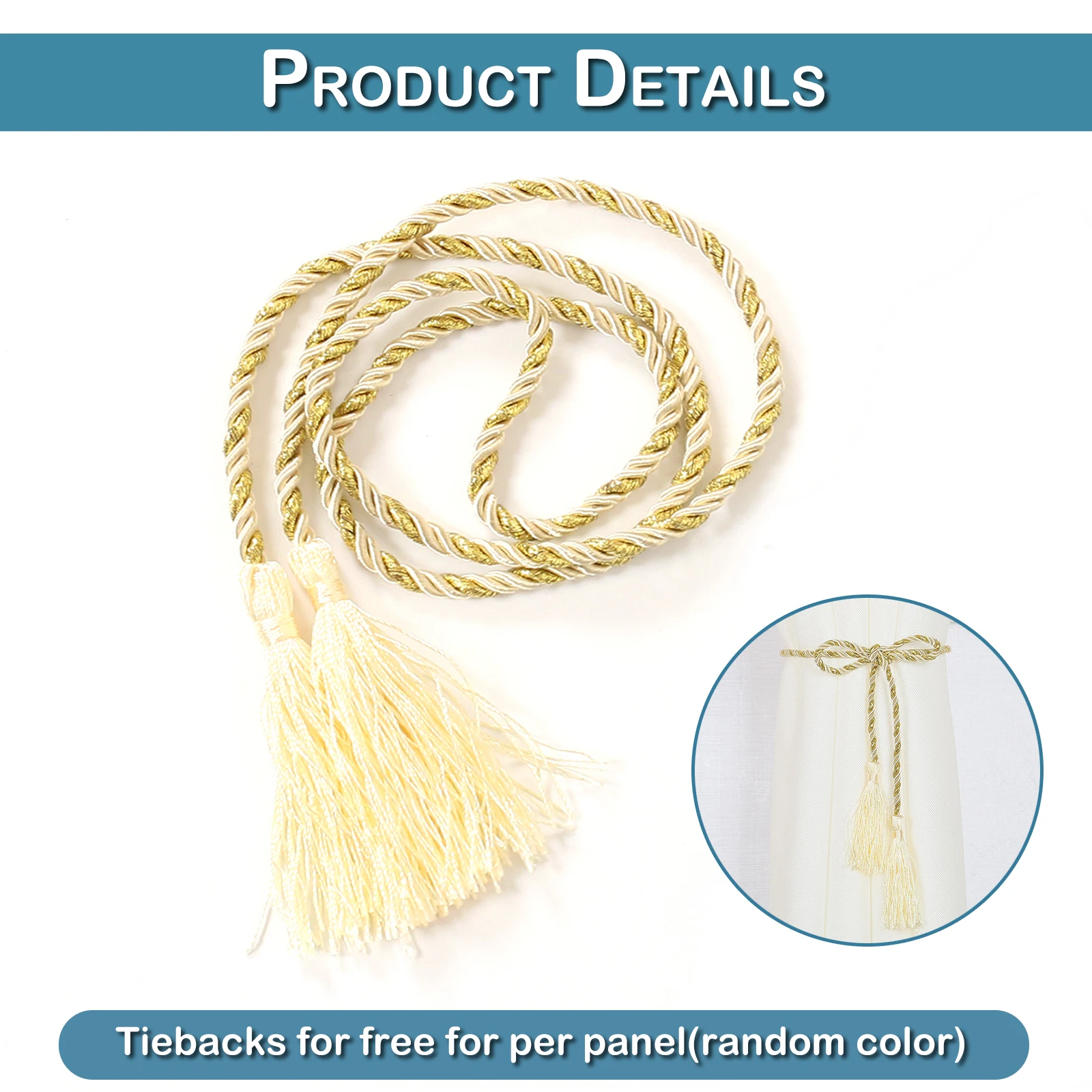 White;52''*63''/52''*84''/52''*95''/52''*108''(size without Pompom); Rod Pocket Heading; Tieback(Random Color) for free for each panel.