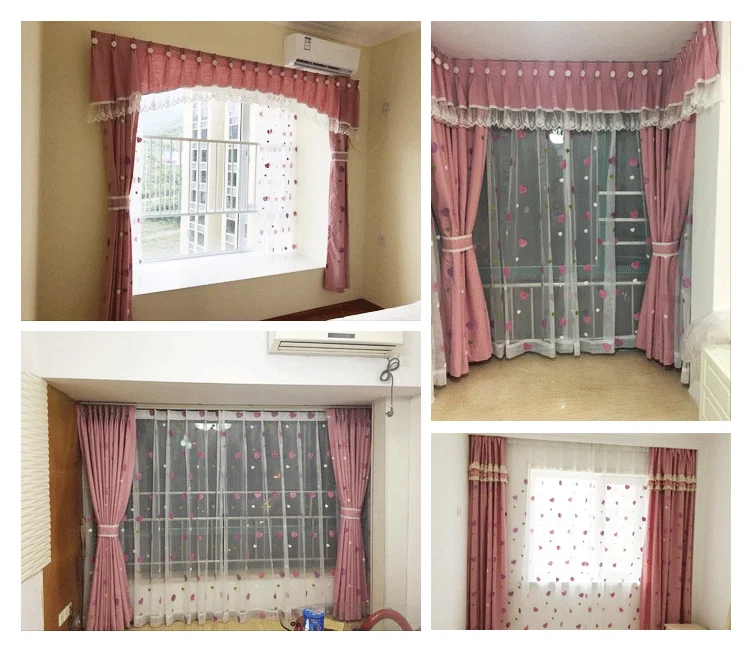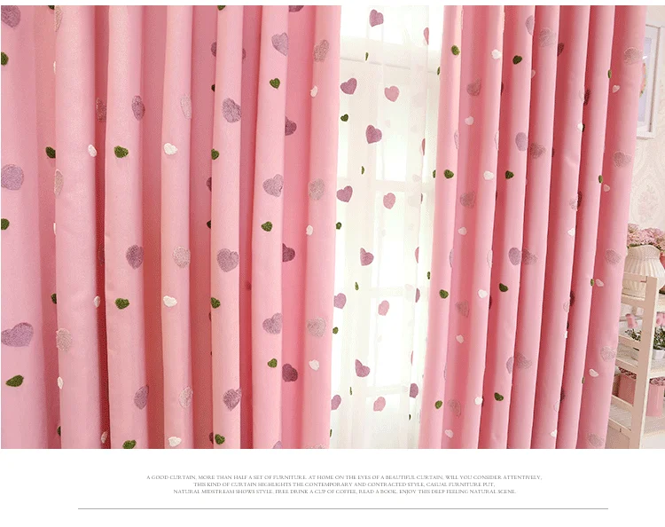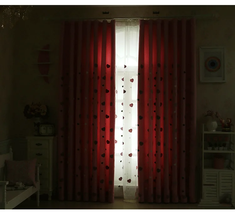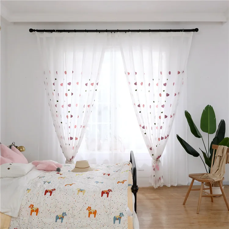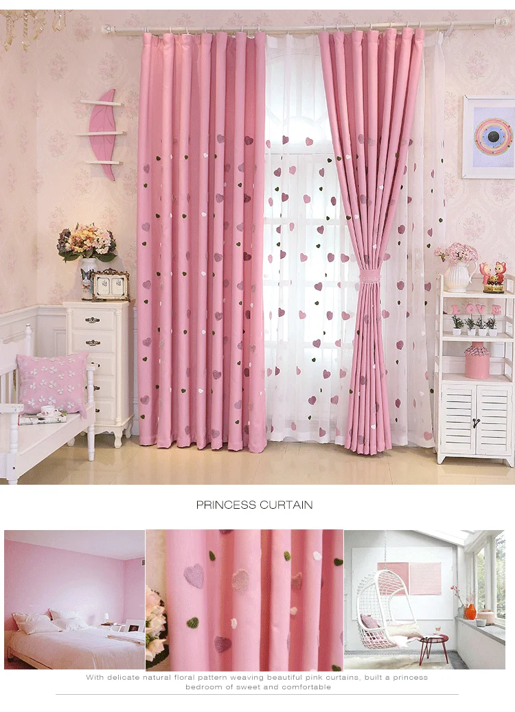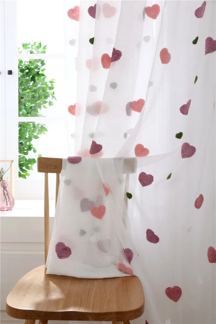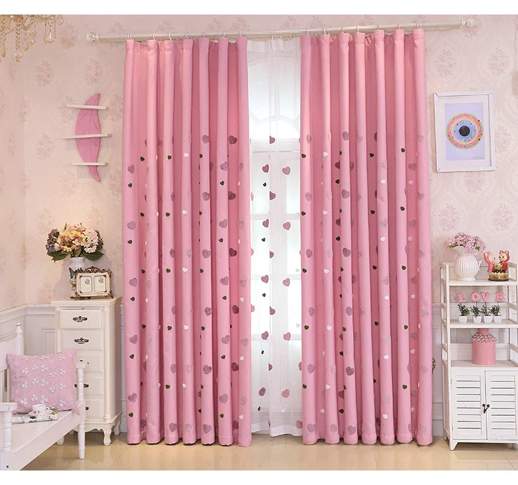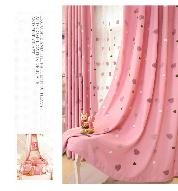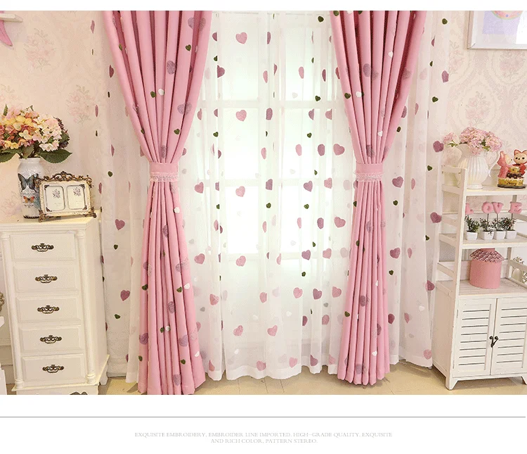 Crianças dos desenhos animados rosa bordado sheer tule 3d amor coração cortina blackout para meninas sala de estar quarto janela cortinas cortina