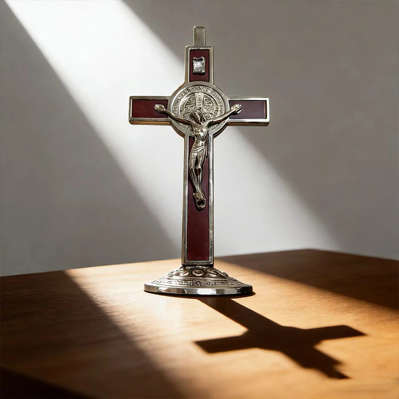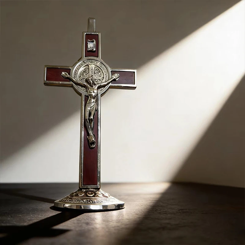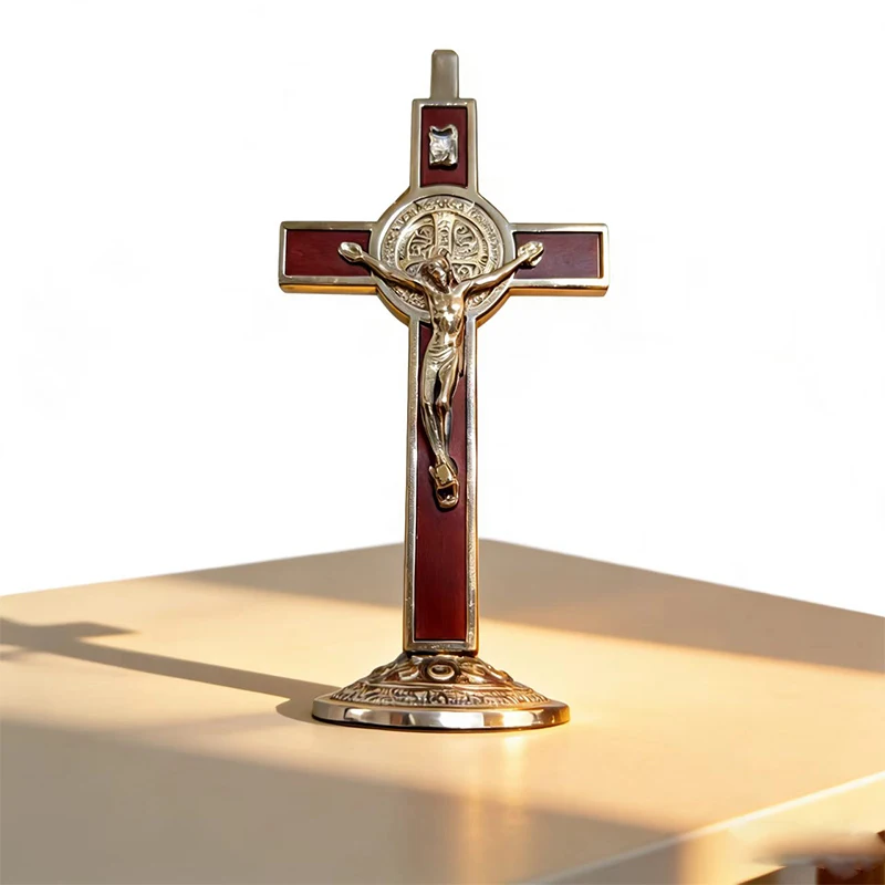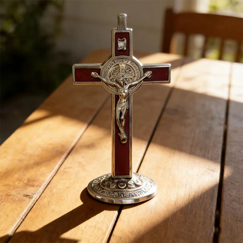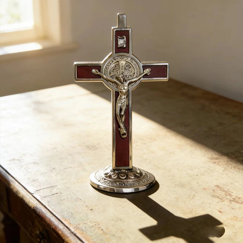 Feito de metal durável, este crucifixo garante longevidade e resistência ao desgaste.