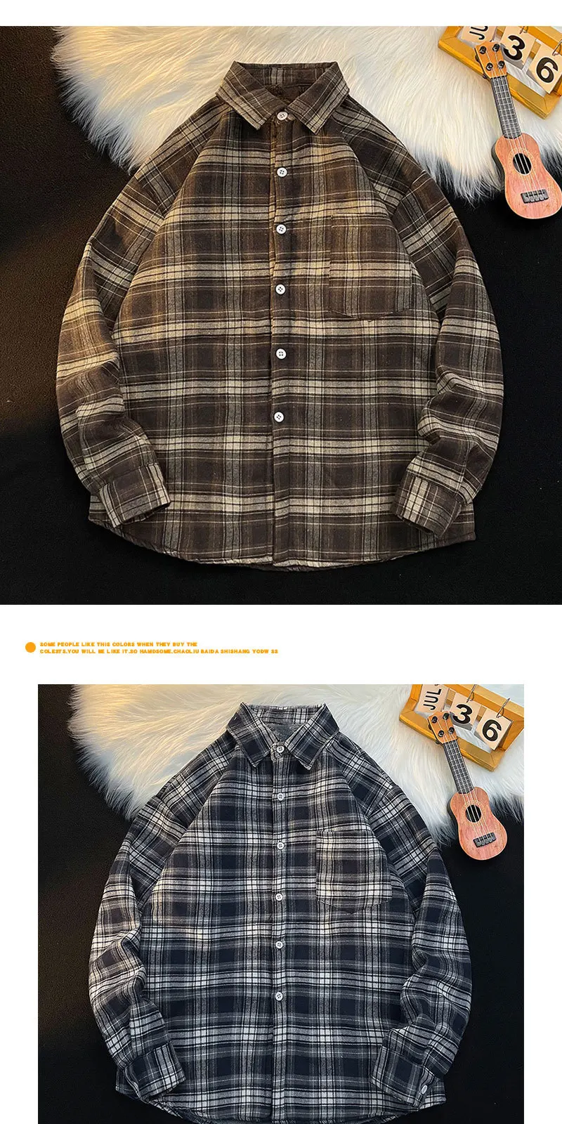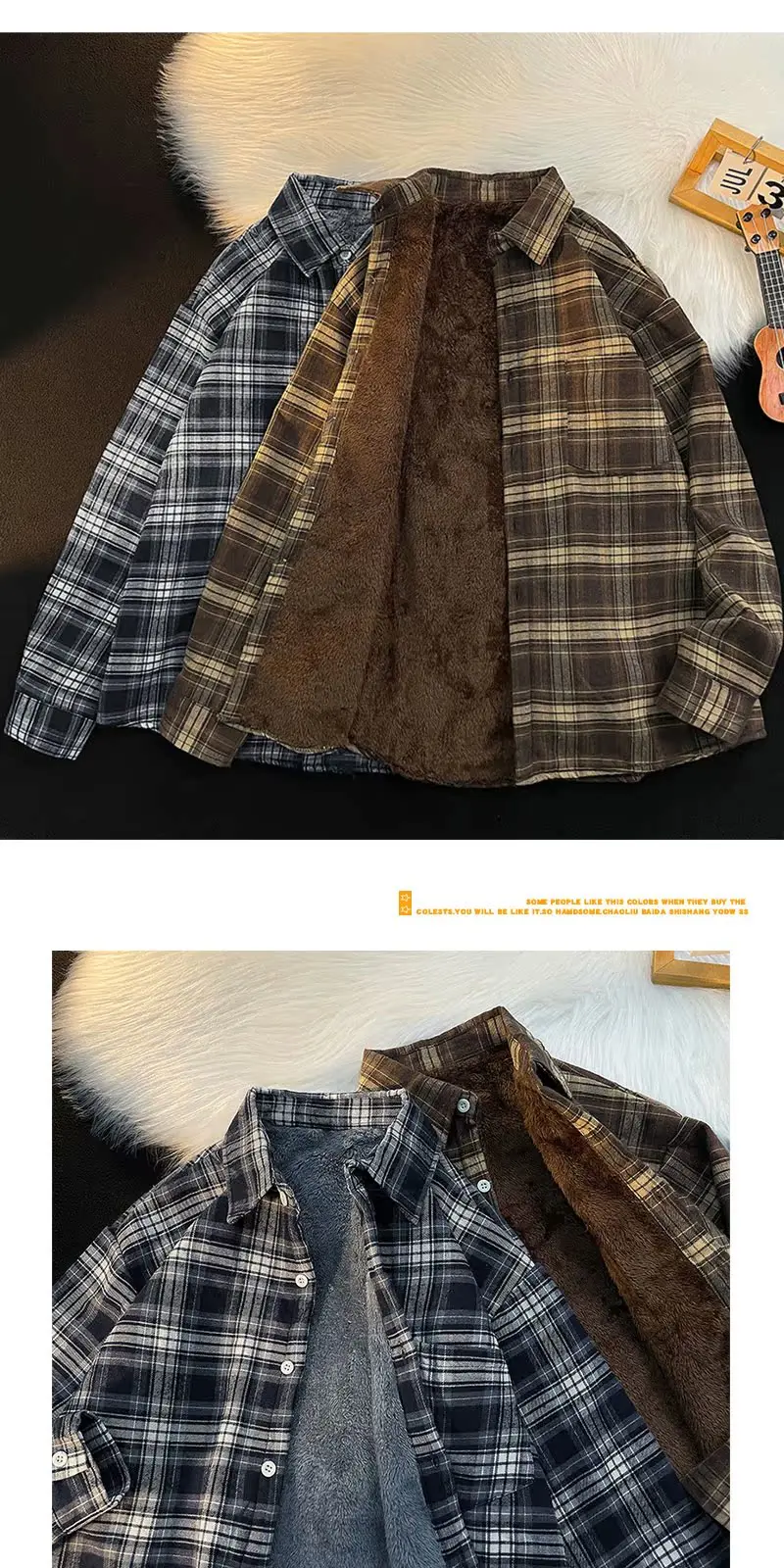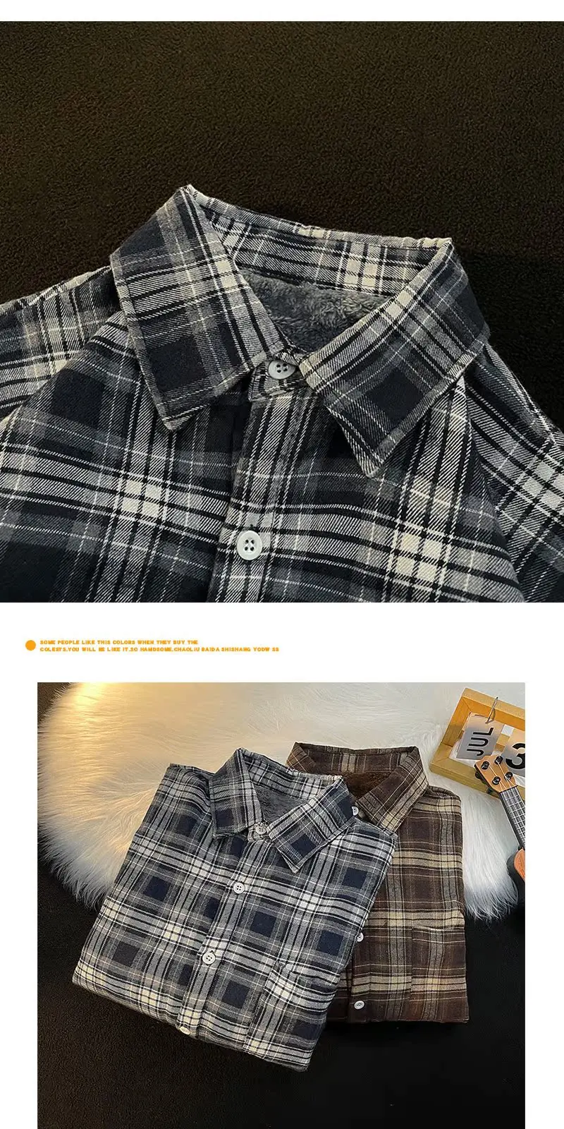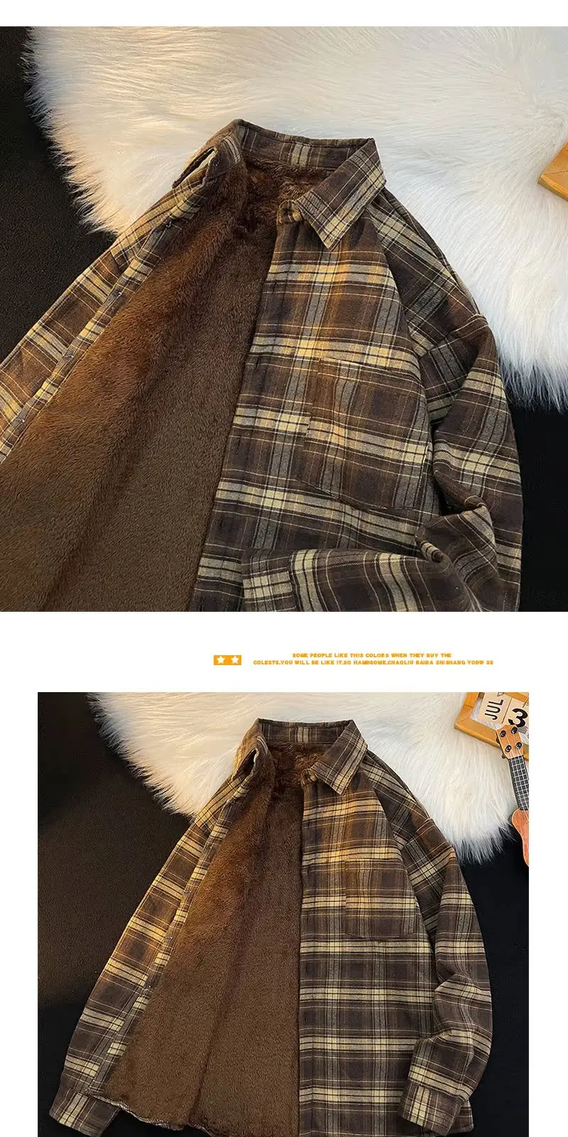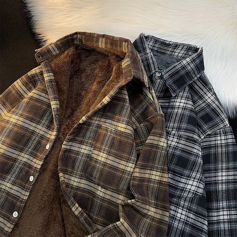 - > Csa Casual de Manga Longa com Forro de Fce Estilo Retro para Outono e Inverno, Moda Solta para Homens Jovens
