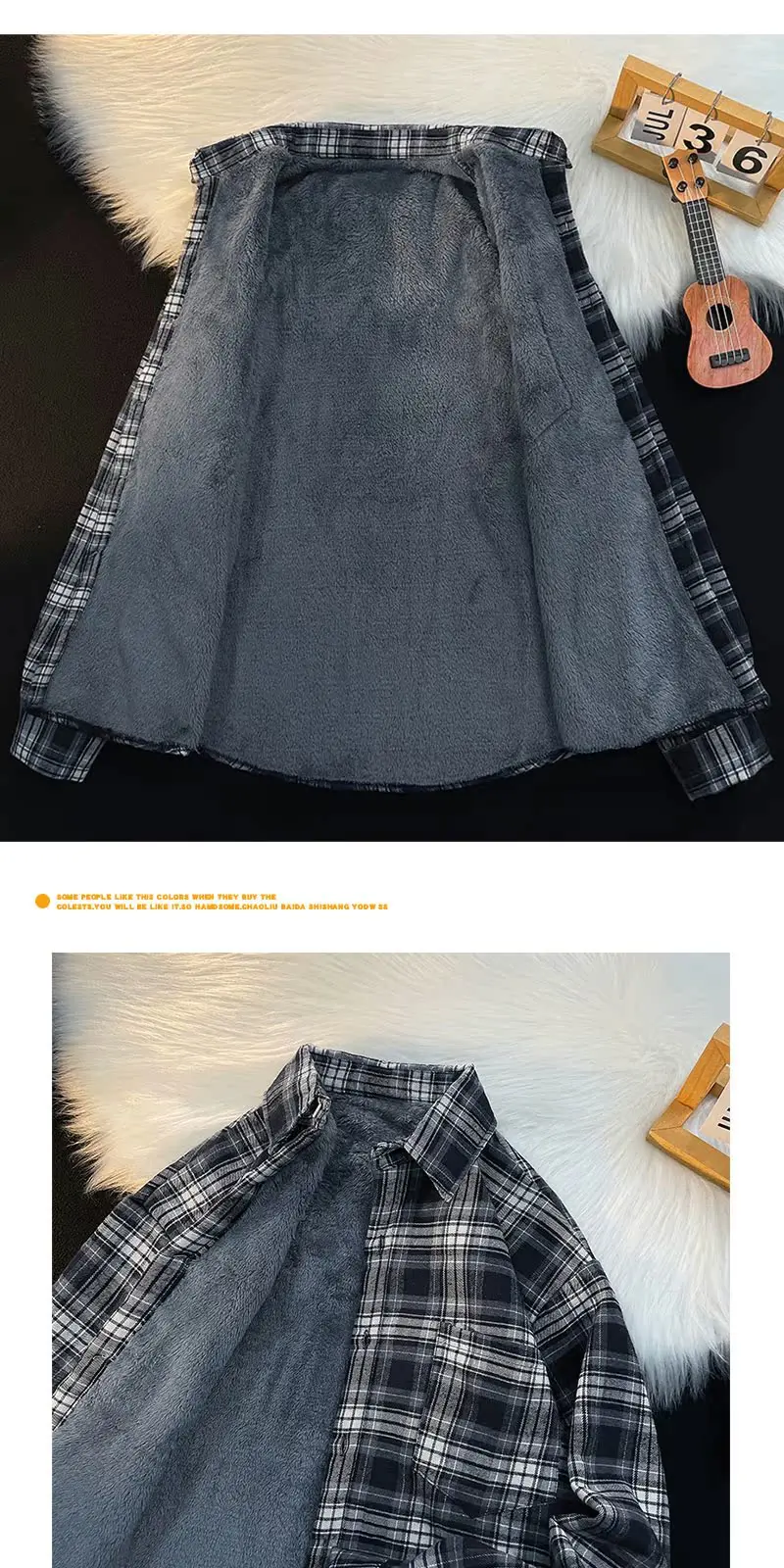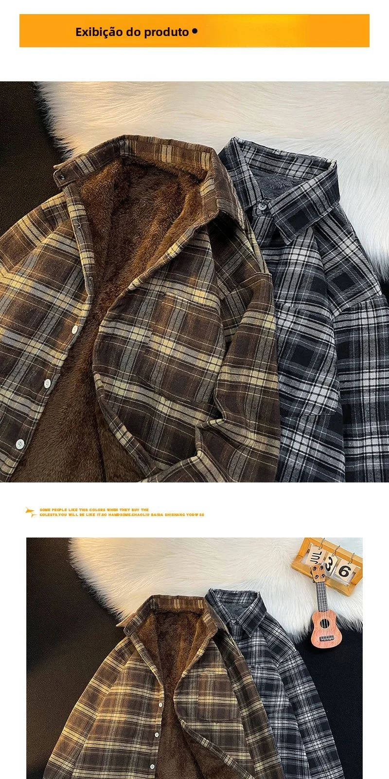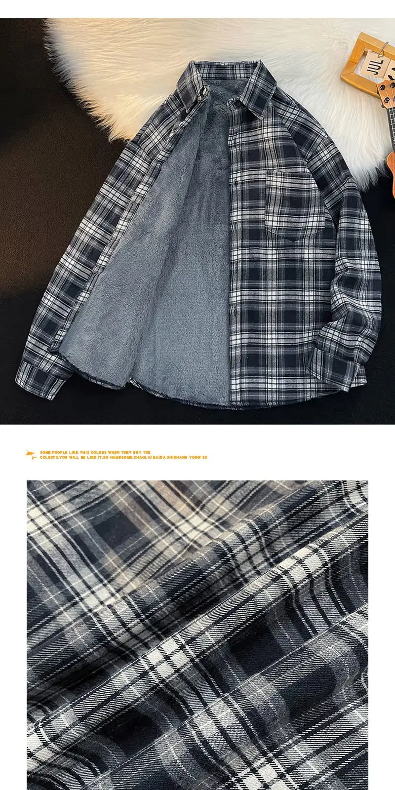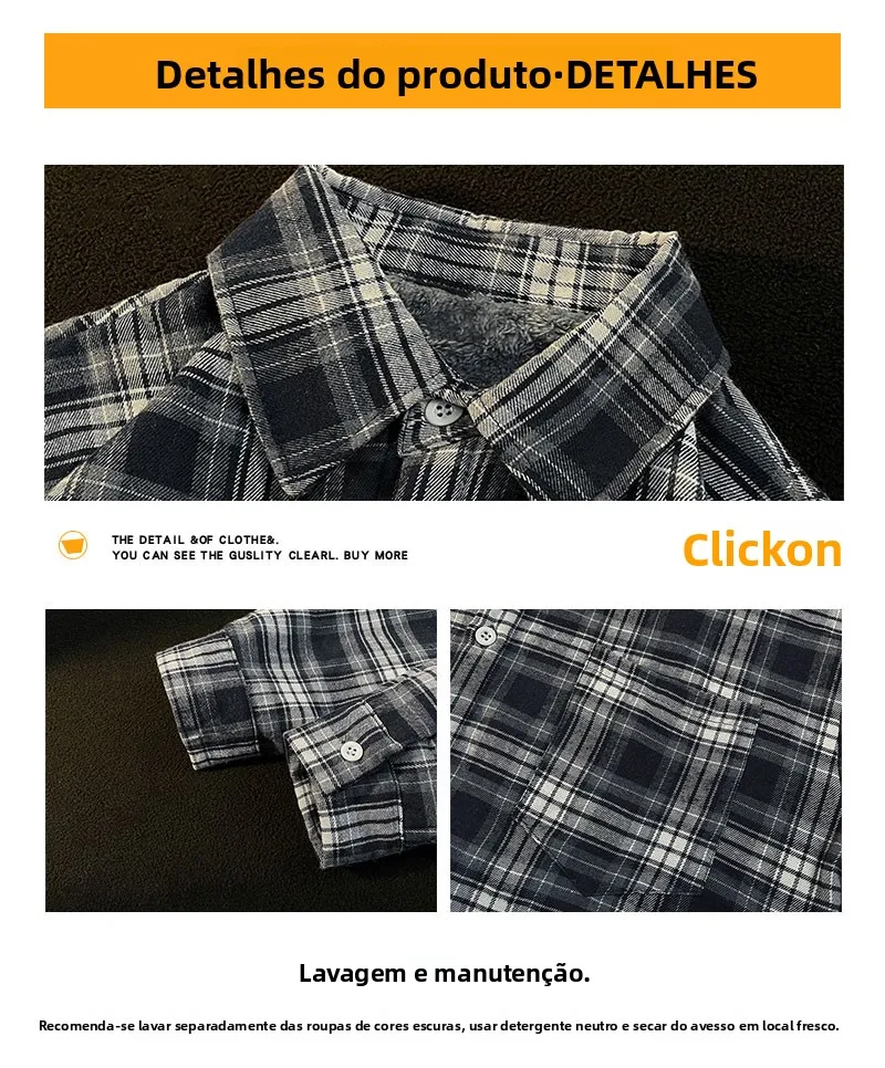Csa Casual de Manga Longa com Forro de Fce Estilo Retro para Outono e Inverno, Moda Solta para Homens Jovens
