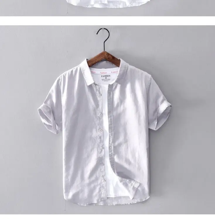 - > Csa Casual Estilo Japonês em Linho e Aodão, Ajuste Solto, Manga Curta, Csa de Verão Masculina, Edição Padrão para Qua...