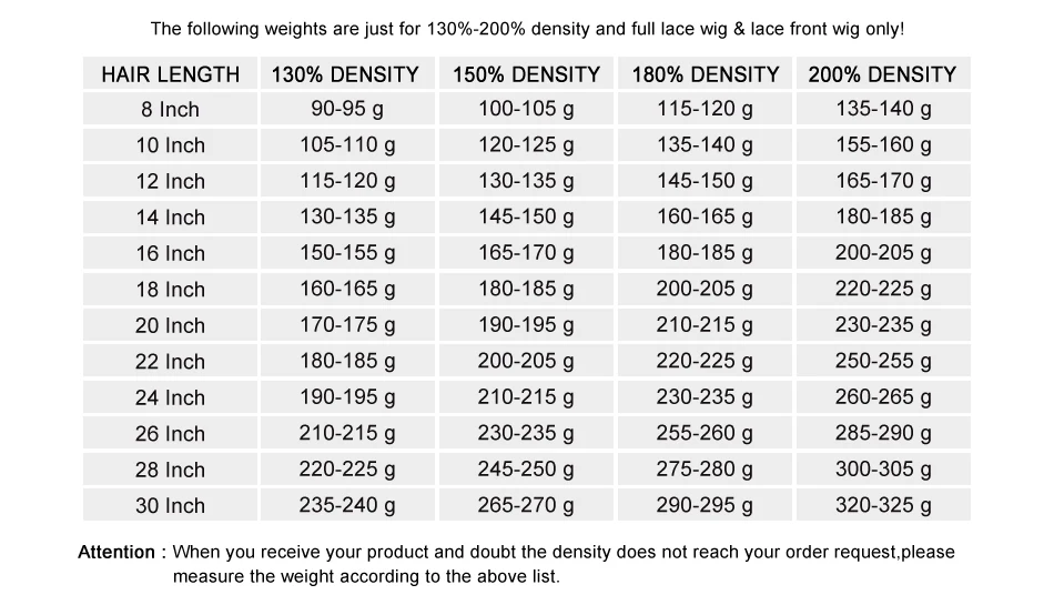 Densidade do cabelo: 180% de densidade