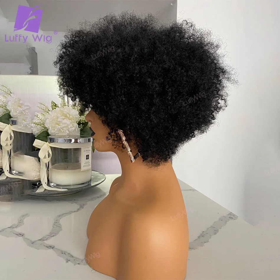 - > Curto pixie corte cabelo humano bob perucas com franja brasileiro remy curto bang bob peruca 180 densidade sem cola para preto feminino luffywig