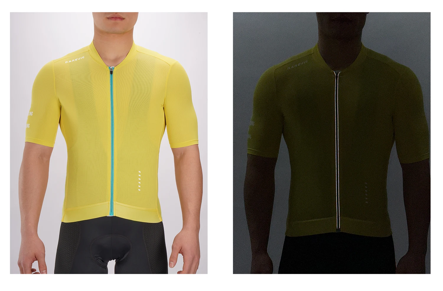 Aperto: elasticidade em 4 direções, ajuste fino, a camisa de ciclismo DAREVIE é um ajuste fino profissional aero.Se você é forte, escolha 1 ou 2 tamanhos acima.