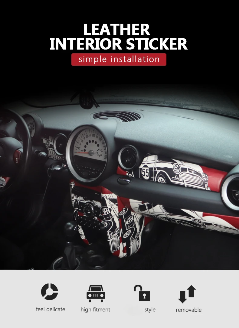 - > Decalque do painel do carro adesivo de couro para mini cooper para r55 r56 r57 r58 r59 acessórios do carro estilo apenas handdrive esquerda