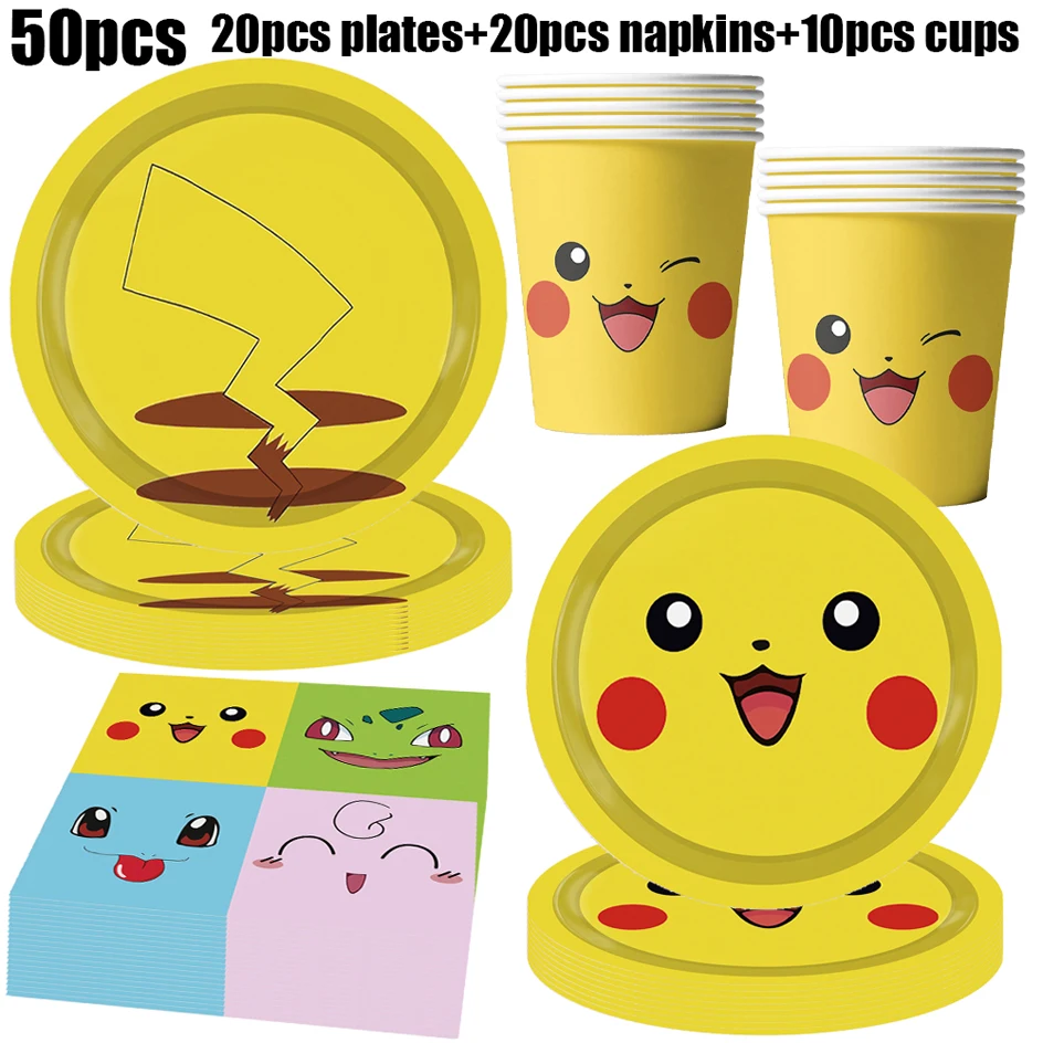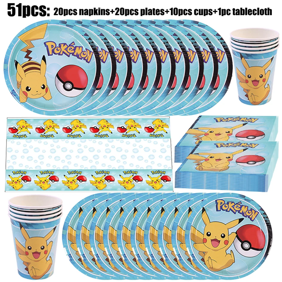 Decorações de festa de aniversário pokemon, talheres de papel, guardanapos, copos, pikachu, toalha de mesa de aniversário, suprimentos para festa, presentes para crianças