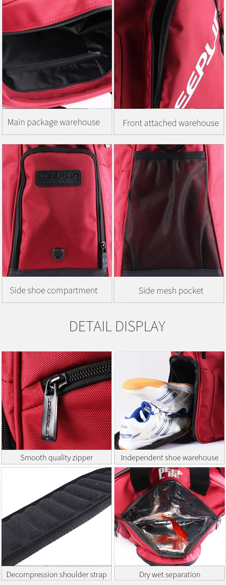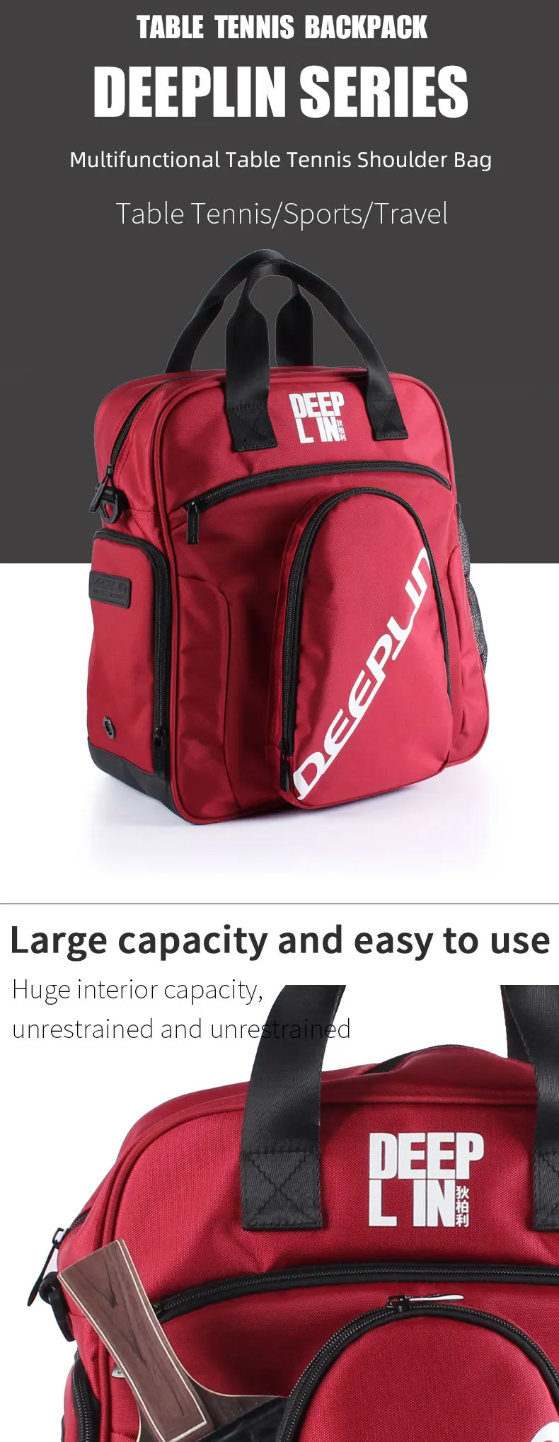 - > Deeplin Table Tennis Sports Mochila, Grande Capacidade Coach Bag, Feito de Material Grosso, Ping Pong Esporte, Separação Molhada Seca