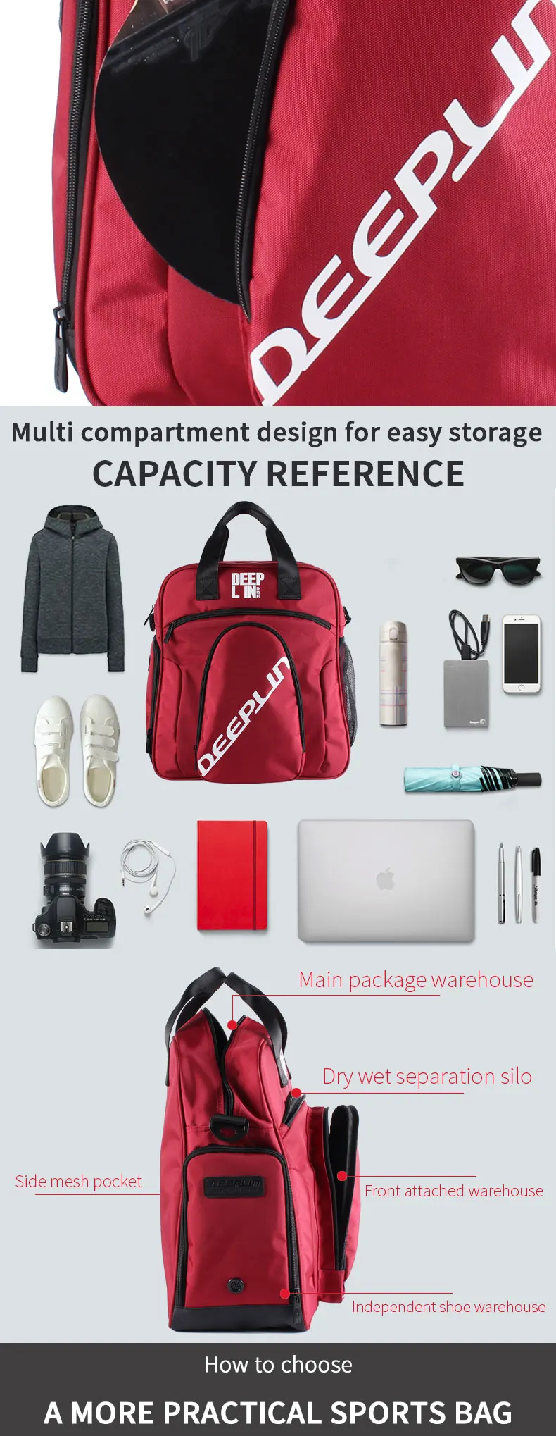Deeplin Table Tennis Sports Mochila, Grande Capacidade Coach Bag, Feito de Material Grosso, Ping Pong Esporte, Separação Molhada Seca