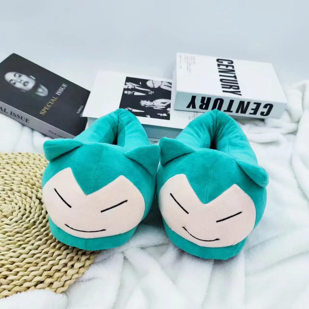 - > Desenhos animados pokemon pet snorlax besta chinelos de pelúcia anime periférico casal casa sapatos quentes piso interior chinelos de inverno