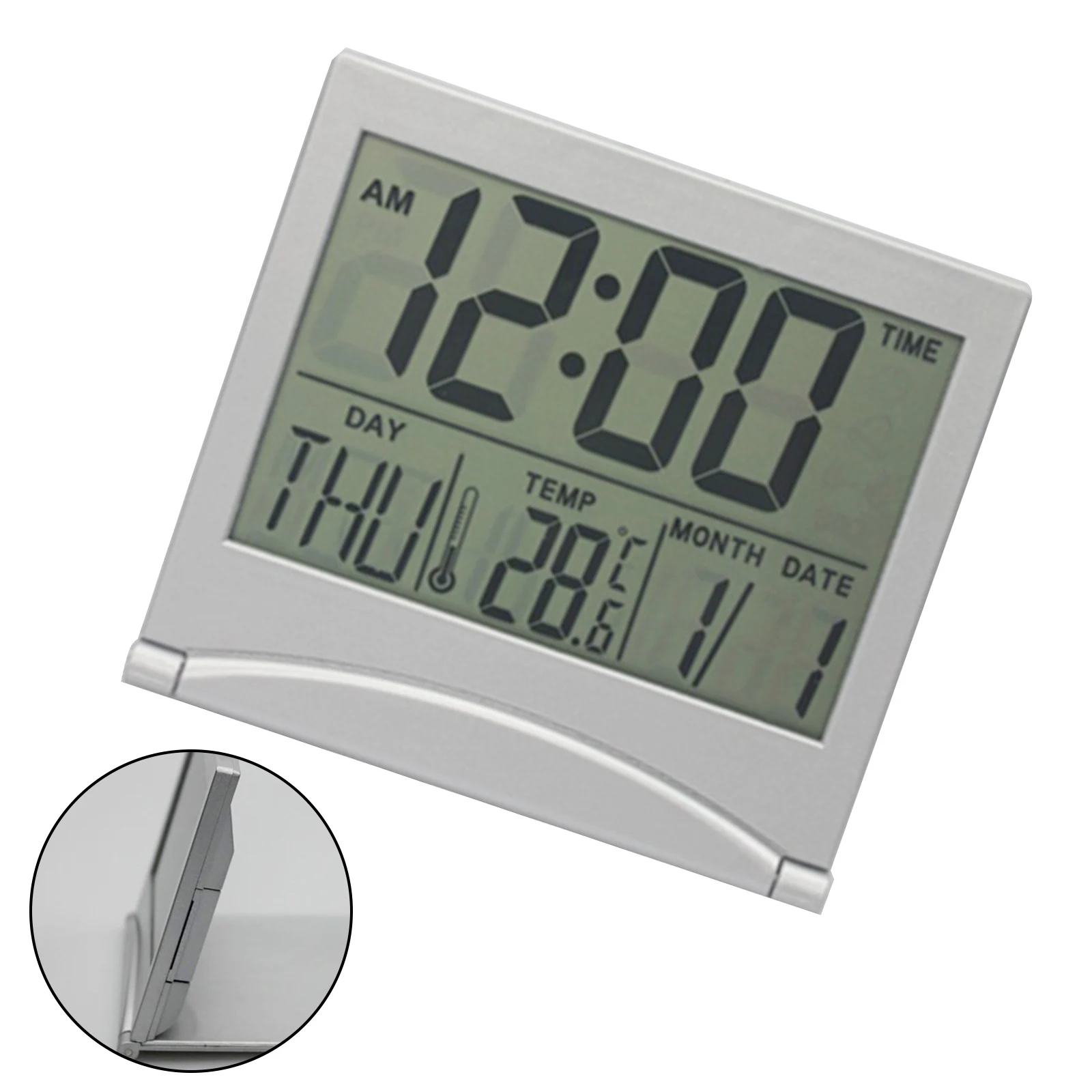 - > Despertador digital dobrável lcd eletrônico viagem mini relógio com temperatura calendário display relógio de mesa para o quarto