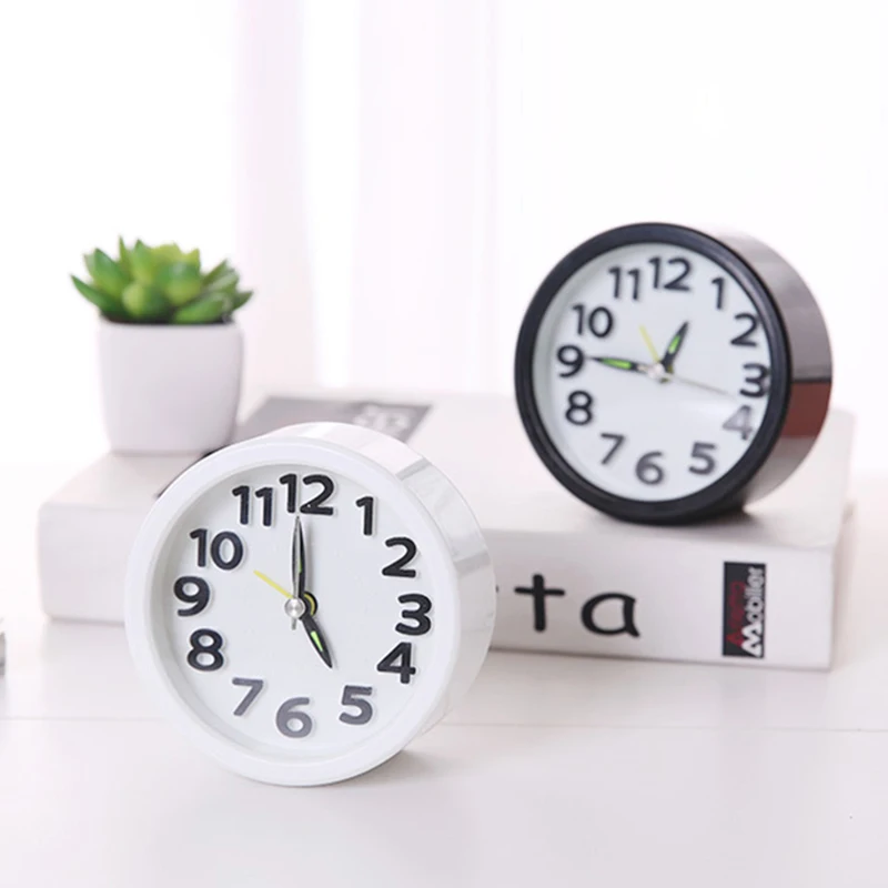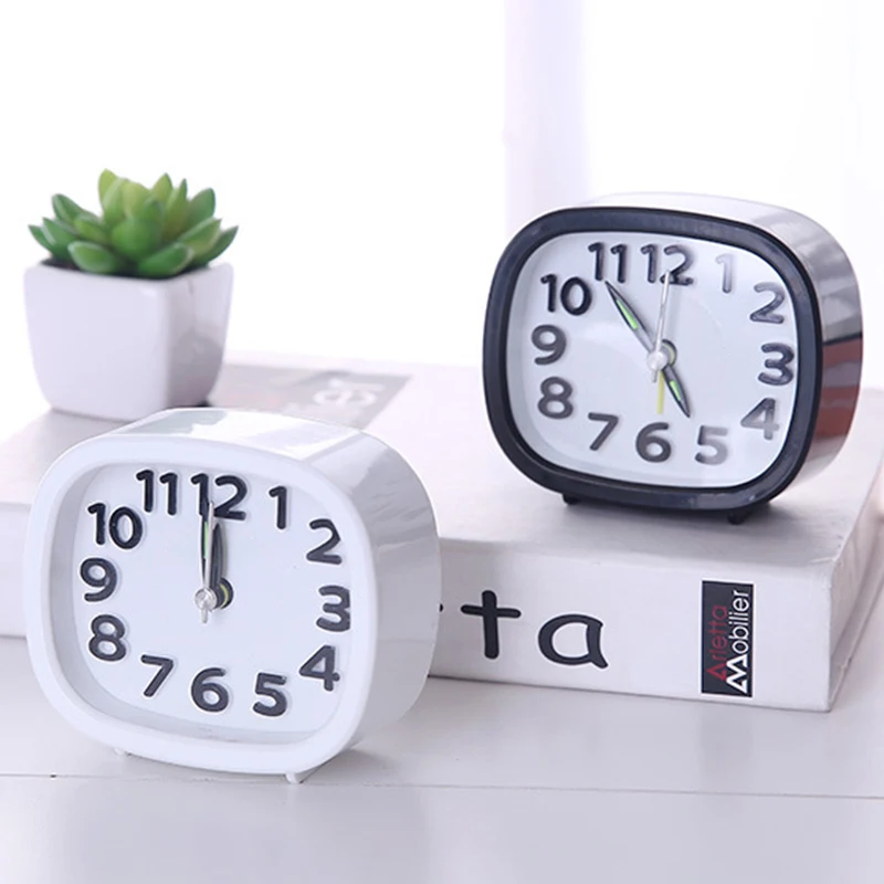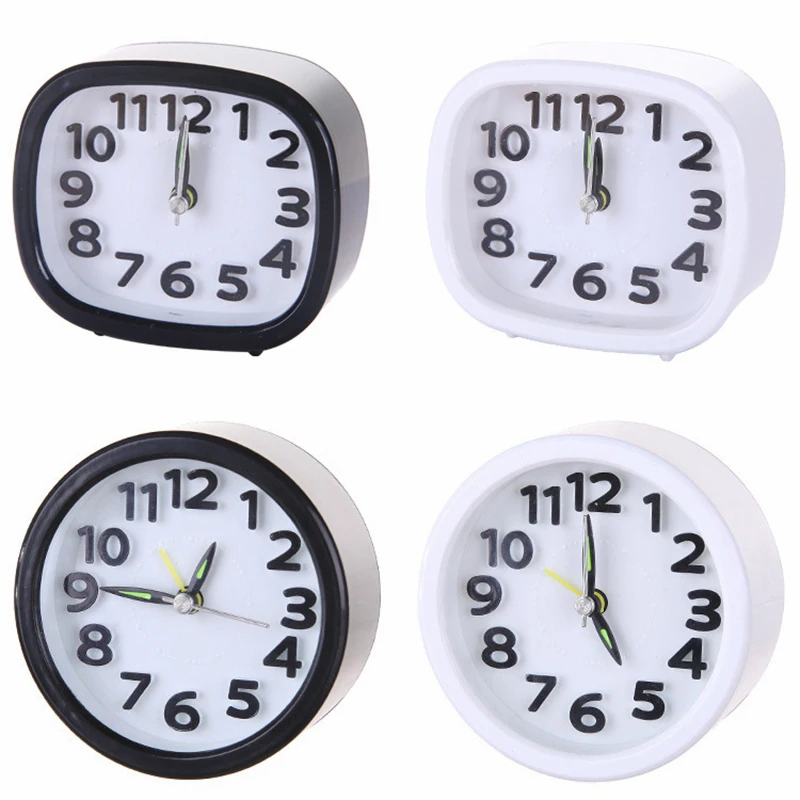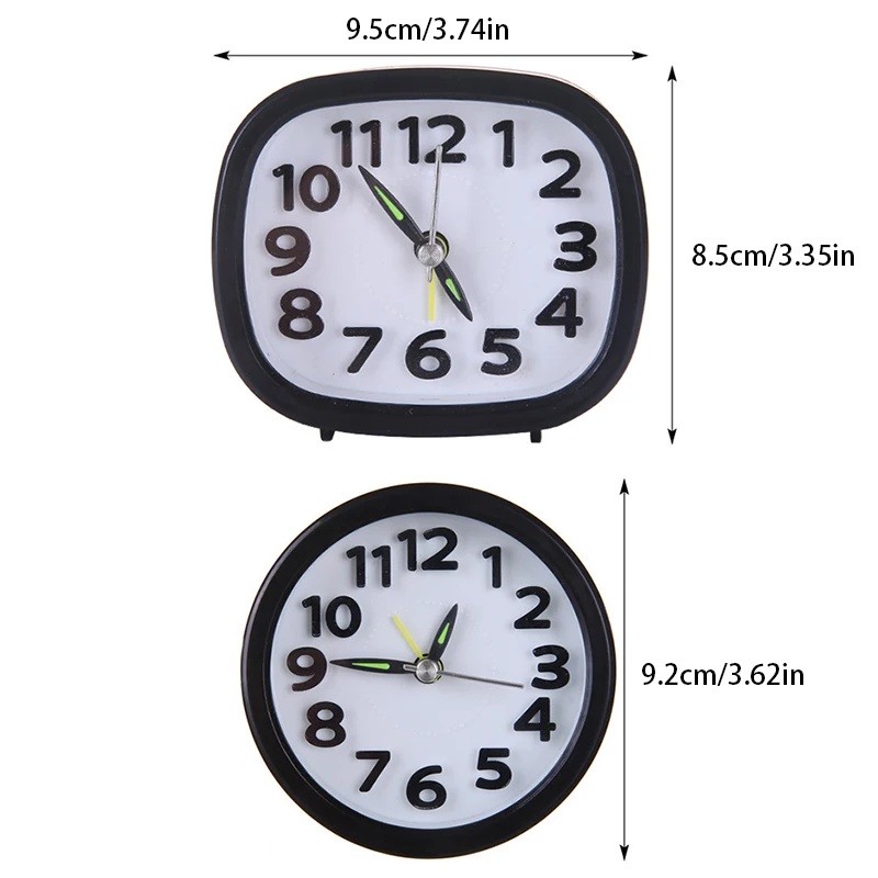 Despertador redondo quadrado pequeno despertador de mesa silenciosa acordar relógio despertador portátil alimentado por bateria