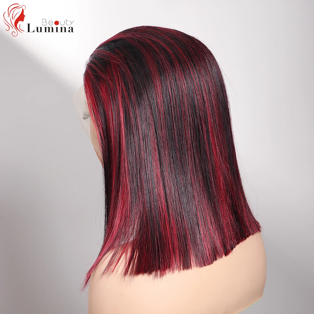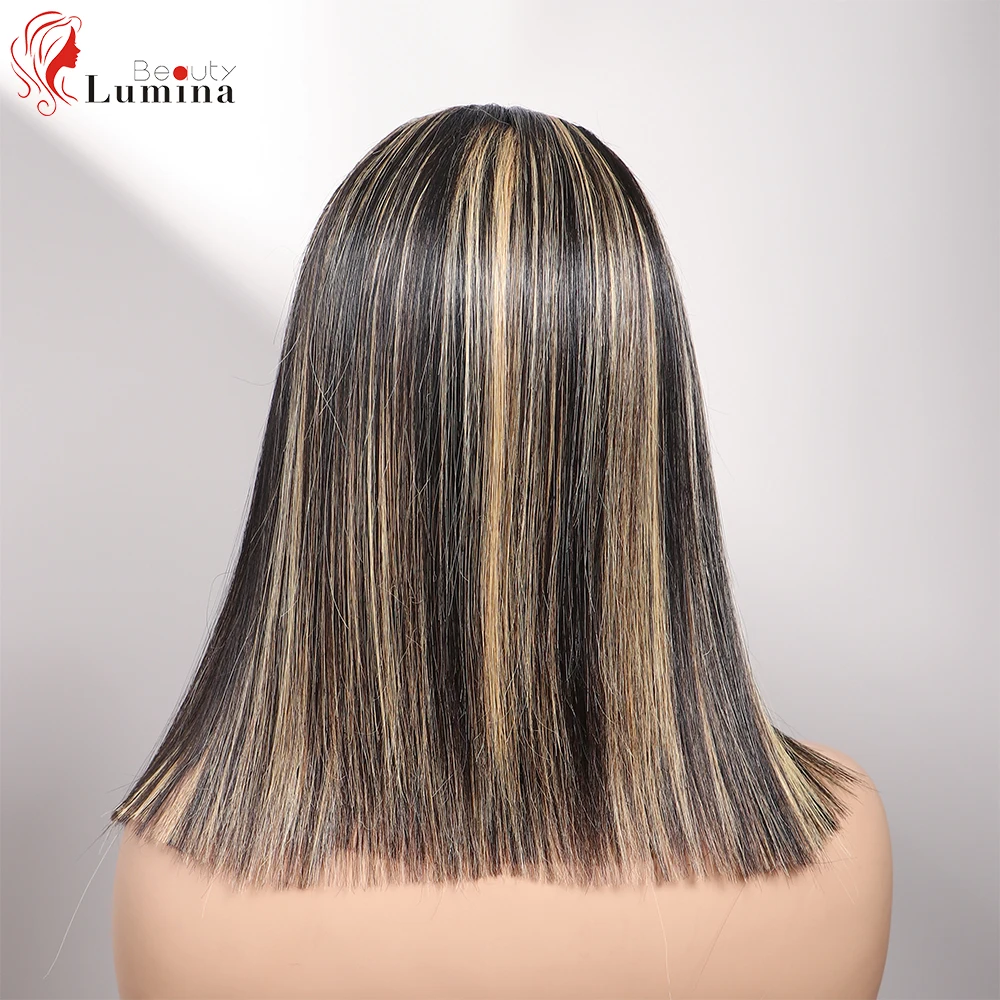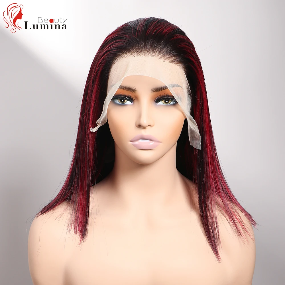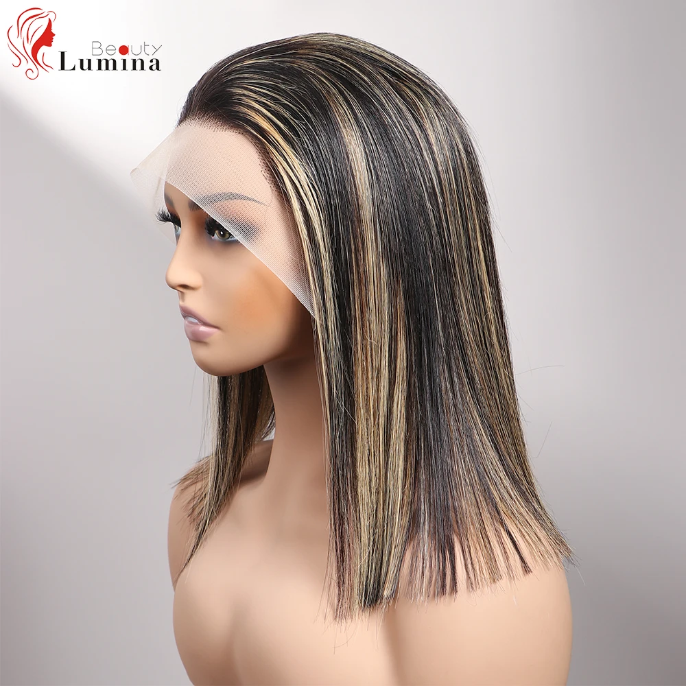 Destaque bob peruca de cabelo humano fechamento do laço bob peruca brasileira em linha reta curto bob peruca balayage frente do laço perucas de cabelo humano