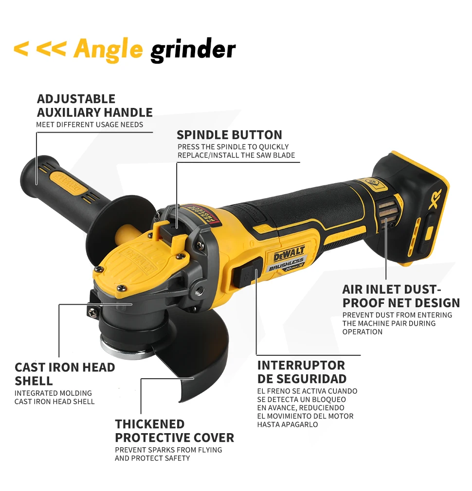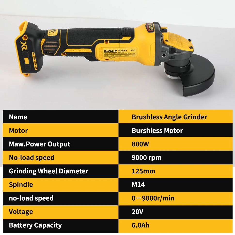 - > DEWALT DCG409 Esmerilhadeira Angular Sem Fio 20V 125mm 9000rpm com Trava de Eixo para Processamento Pesado de Metal/Madeira/Revestimentos em Construção