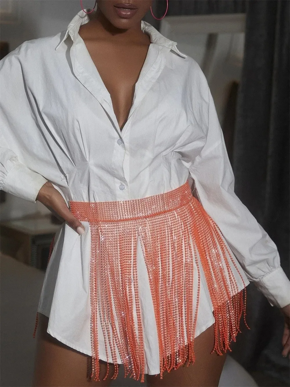 4.Efeito de flash de diamante: O efeito de flash de diamante criado pelos strass adiciona brilho à saia, melhorando seu apelo geral.